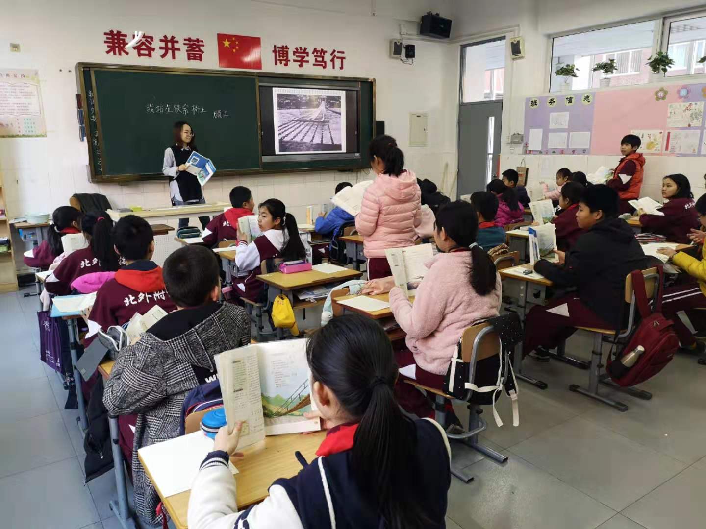 六年级杜晴晴老师执教的《我站在铁索桥上》,学生在欣赏诗歌中追忆红军当年飞夺泸定桥激烈战斗的场面,激发对如今和平美好的生活的热爱。不仅感受遗迹背后的历史故事,还与现在生活联系起来,进行诗歌仿写,切实提升语文素养。