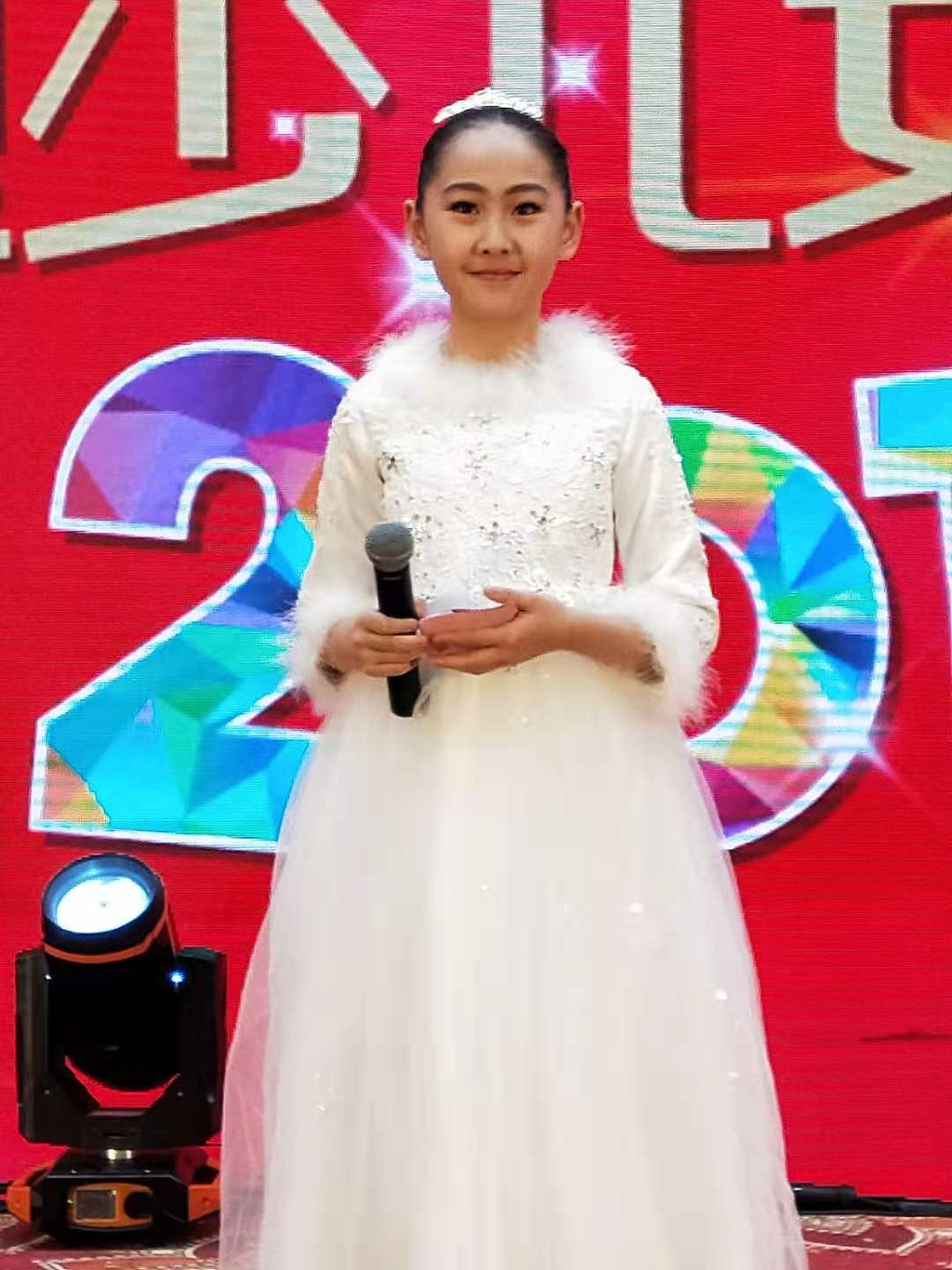 擅长朗诵和播音主持的赵滋桢来自五(2)班,她还是我校微电影的小主持人。2018年考入曹灿艺术团精英班,是曹灿艺术团大型活动的“领头羊”。她曾经多次参加国家级、北京市、海淀区各级各类的朗诵、播音、主持比赛,并斩获一等奖。2015年至2018年,在海淀区中小学生艺术节上,赵滋桢连续4年获个人朗诵一等奖;2017年第三届曹灿杯朗诵大赛,荣获北京赛区一等奖,全国总决赛银奖;荣获2018年海淀区语文委主办的“中华诵”个人朗诵一等奖等。