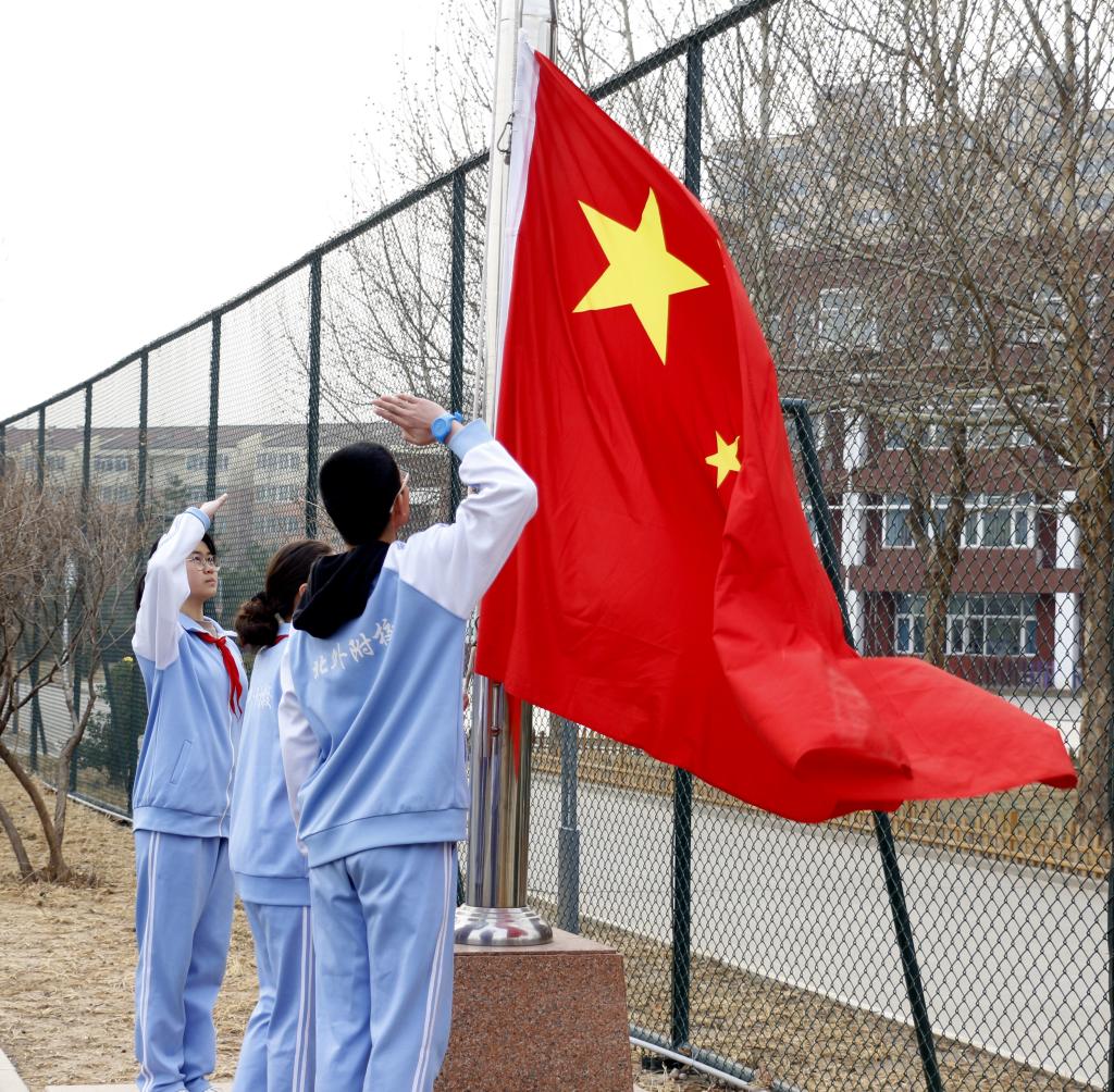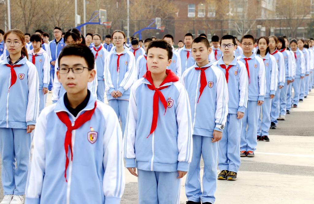 3月11日早晨,我校中学举行了以“发挥榜样作用 成就更好自己”为主题的升旗仪式,本次国旗下领唱国歌的班级为初一(2)班。