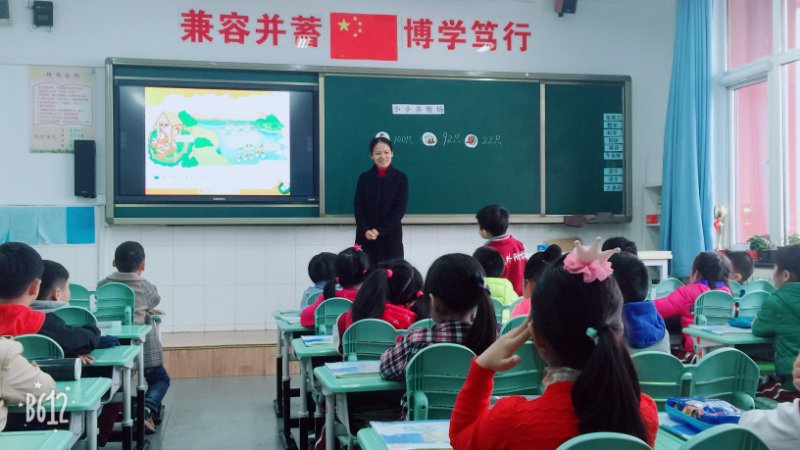一年级数学备课组组长郭琳玲老师在一(8)班进行了骨干教师示范课,郭老师首先通过丰富的情境图,让学生利用已有的经验,学会用多得多,多一些等词组来描述鸡,鸭,鹅,羊,小兔数量之间的关系,一方面帮助学生理解词语组的意思,另一方面帮助学生体会数的相对大小关系