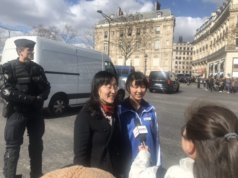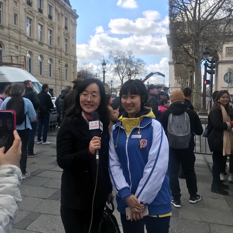 在中国与法国建交55周年之际,中国国家主席习近平时隔5年后再次对法国进行国事访问。当地时间3月25日,法国总统马克龙在巴黎凯旋门星形广场为习近平主席举行隆重的欢迎仪式。我校高中执行校长王静和学生代表朱玥在凯旋门边见证了全过程。