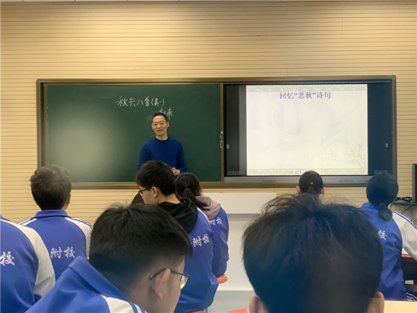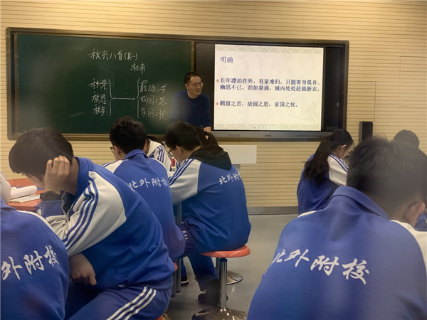 3月22日上午第三节课,高中语文组娄树华老师在录课室,与高一2班全体同学一起录制完成了一堂令人印象深刻的课题研究课——《秋兴八首(其一)》赏析。