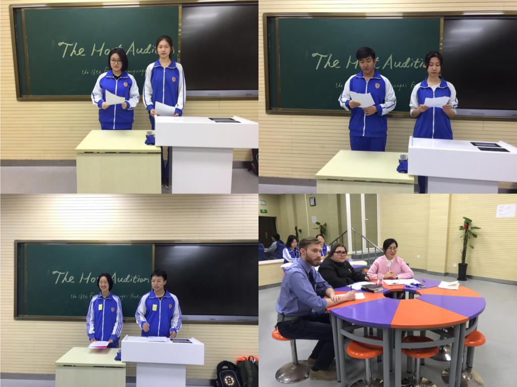 在外语节来临之际,我校高中英语教研组于3月27日下午组织了“北外附校第16届外语节主持人选拔赛”,选拔优秀学生担任外语节开幕式、 闭幕式及其他活动主持人。高中英语教师韩笑、外教Ryan及Alana担任本次活动评委。