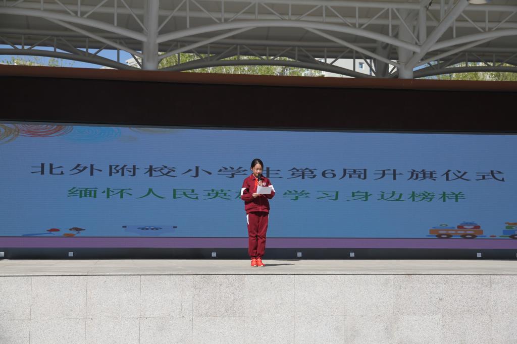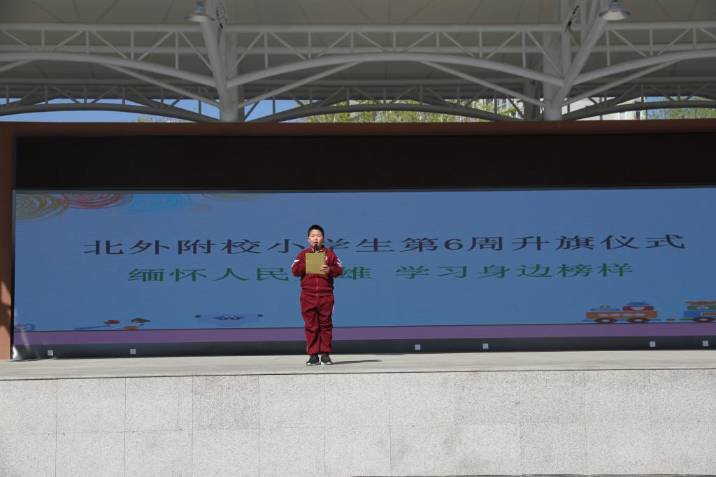 4月1日早晨,我校小学举行了以“缅怀人民英雄 ,学习身边榜样”为主题的升旗仪式。