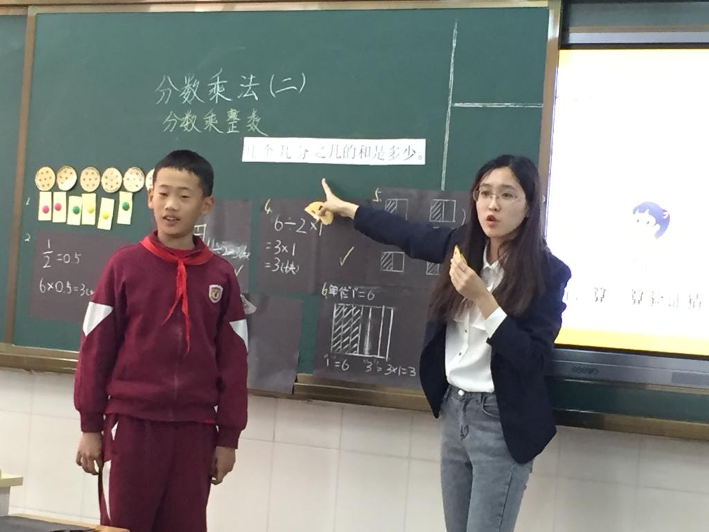 初春老师在五(4)班进行了党员教师研究课《分数乘法(二)》。本节课学生在已有知识的基础上继续拓充分数乘法的意义,在一次次的猜想与验证中发现、得到结论,并将其与生活实际相联系。通过本节课的学习,学生真正体会到数学与生活的密切关系,激发了学习兴趣,同时培养了发现问题、解决问题的能力。