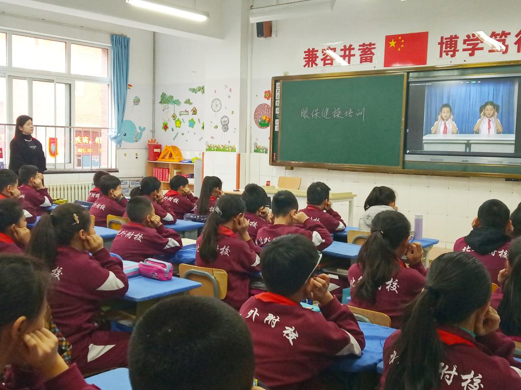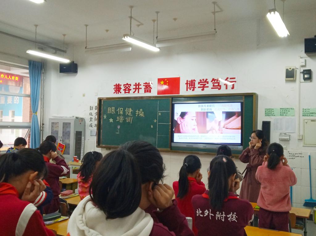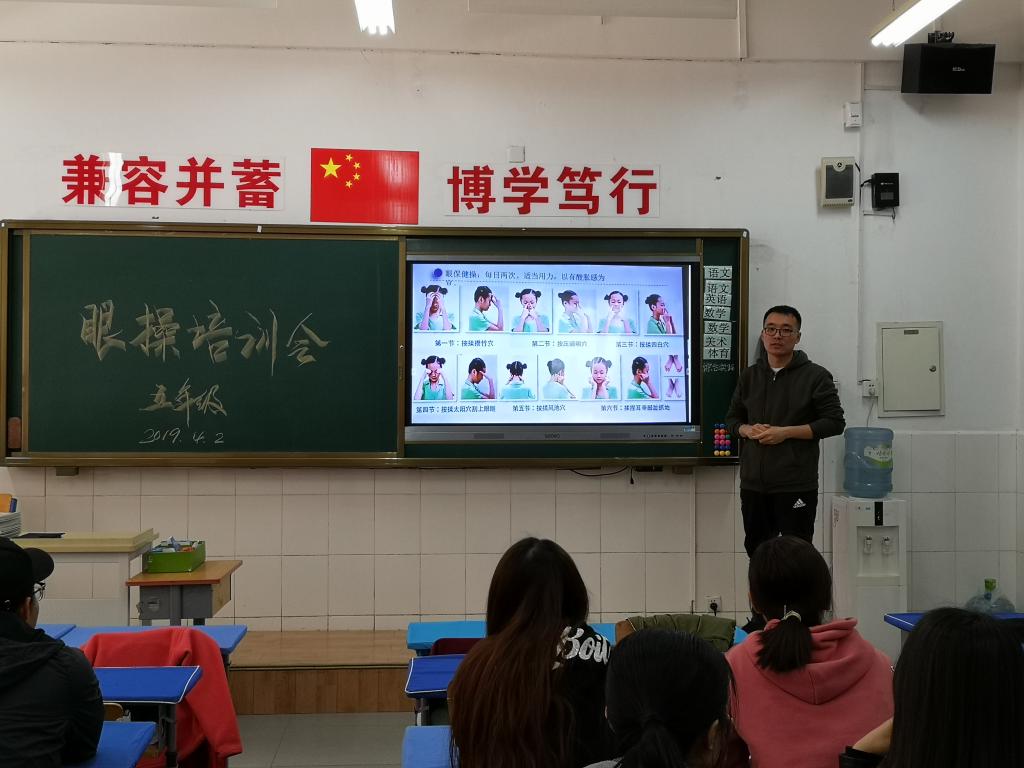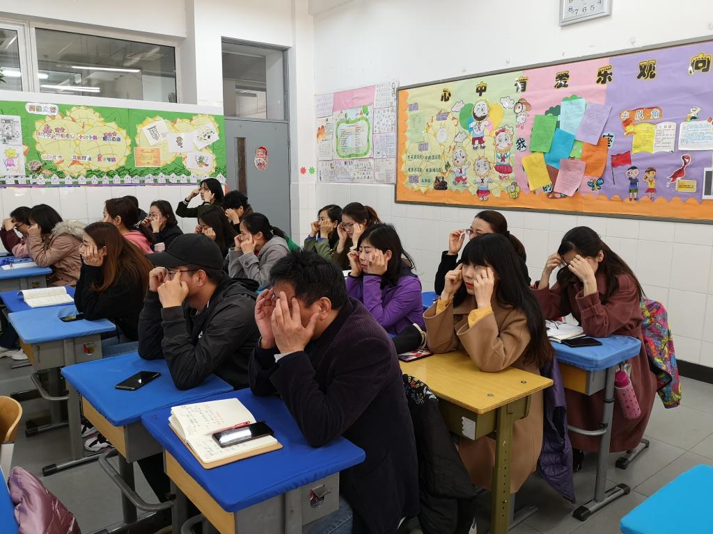 4月2日中午,五年级全体任课教师在五二班教室,听取了王琳老师参加海淀区教育系统中医防近视知识及眼保健操学位全员培训的心得体会,现场学习体验了眼保健操的穴位定位和动作要领知识。