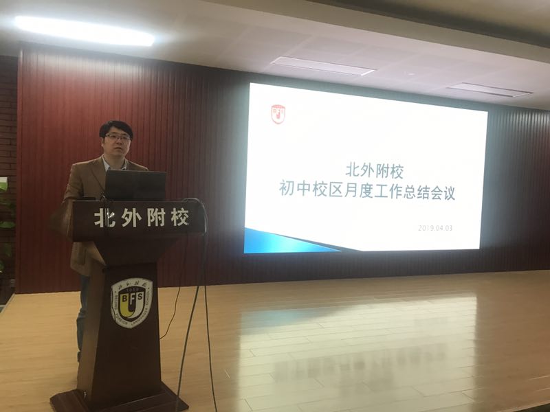 4月3日下午13时,我校初中在第二阶梯教室召开月度教育教学工作总结会议。我校党总支书记张继军、初中执行校长杨磊和全体初中教师参加了本次会议。
