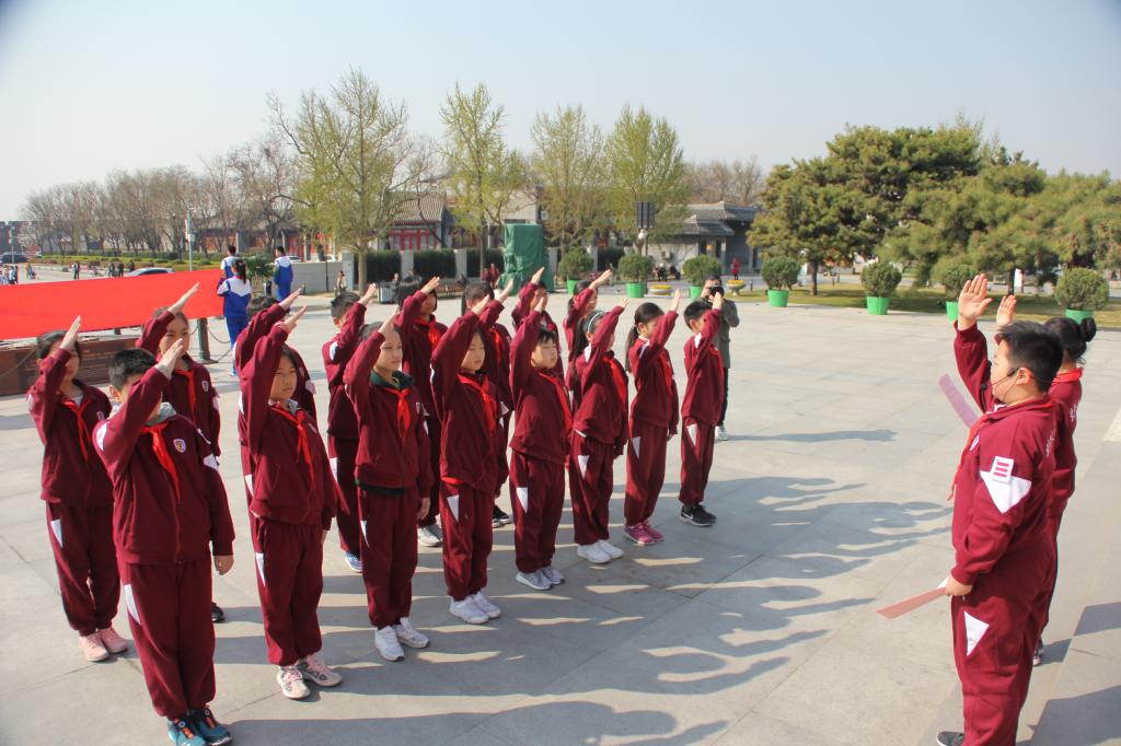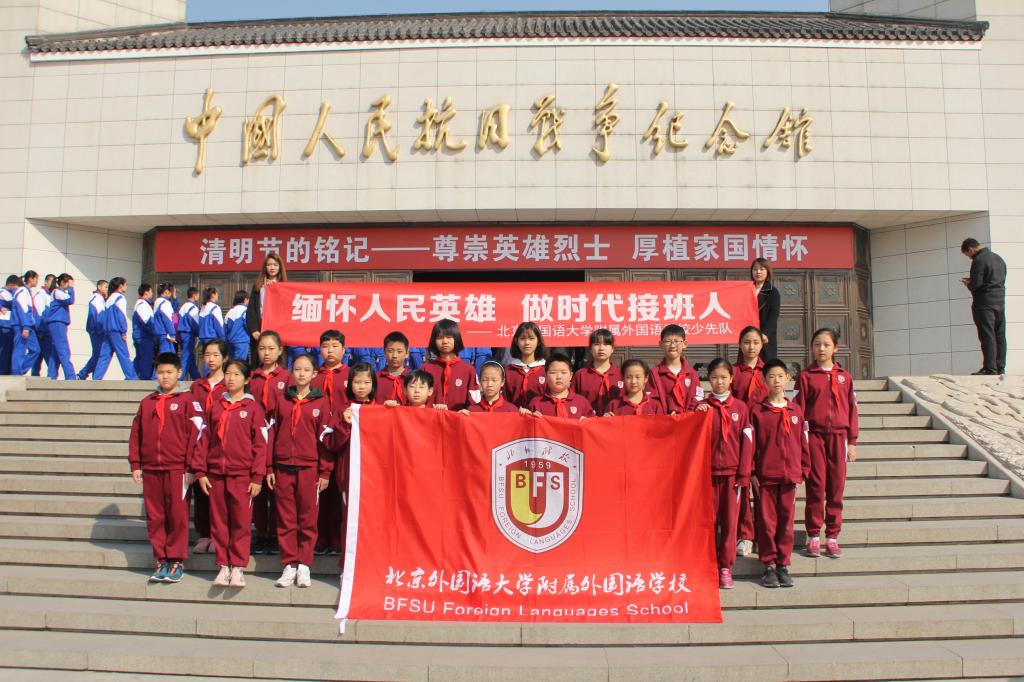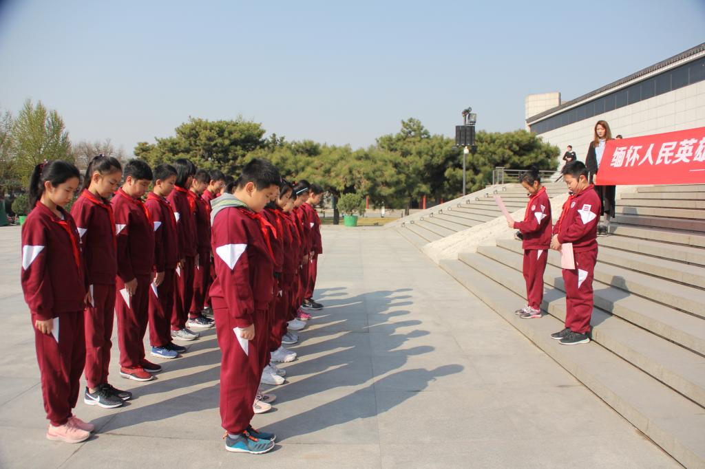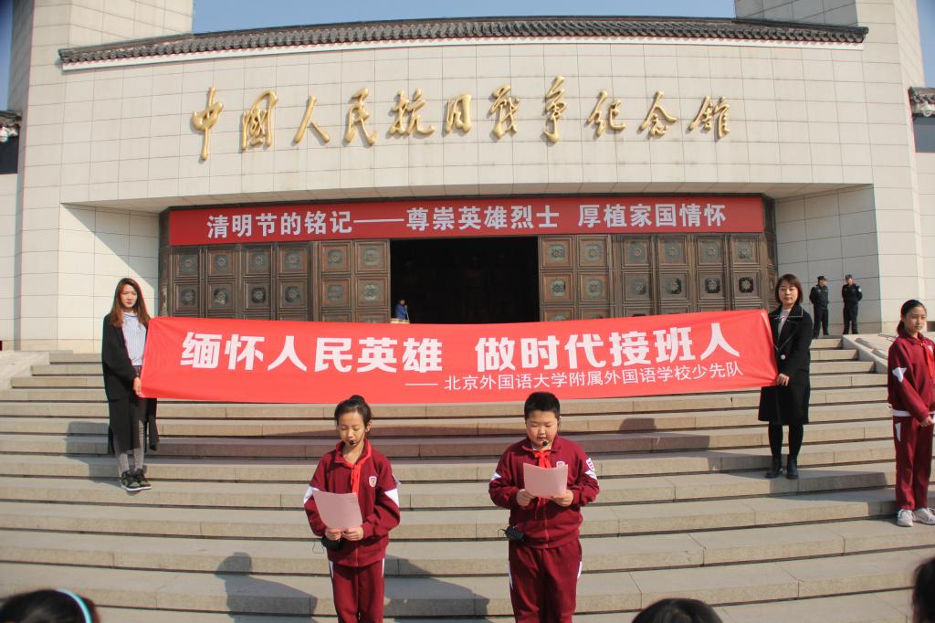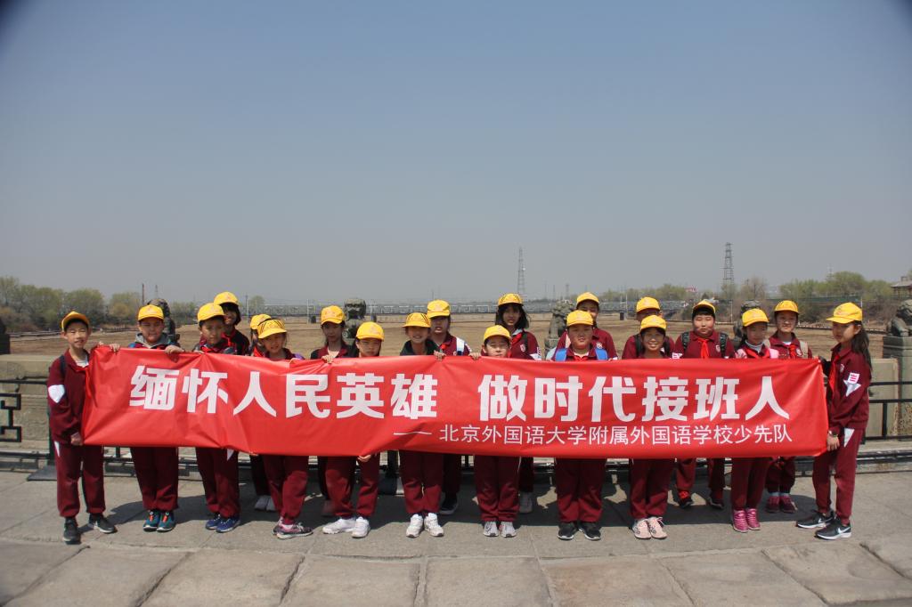 松柏苍翠,白菊朵朵。4月3日,我校少先队员代表来到中国人民抗日战争纪念馆。在庄严肃穆的纪念馆前,队员们举行了“缅怀人民英雄 做时代接班人”主题活动。在庄严的国歌声后,全体师生默哀追忆。大队辅导员席老师进行了讲话,号召队员们不辜负烈士们的遗愿,牢记使命,传承红色基因,争做社会主义合格建设者和接班人。随后,队员们进行了庄严的宣誓。祭奠活动在队员们齐唱《中国少年先锋队队歌》和齐颂《少年中国说》中结束。接着,队员们在讲解员的带领下参观了中国人民抗日战争纪念馆和卢沟桥遗址,回顾了中国军民奋起抗战的壮烈情景。