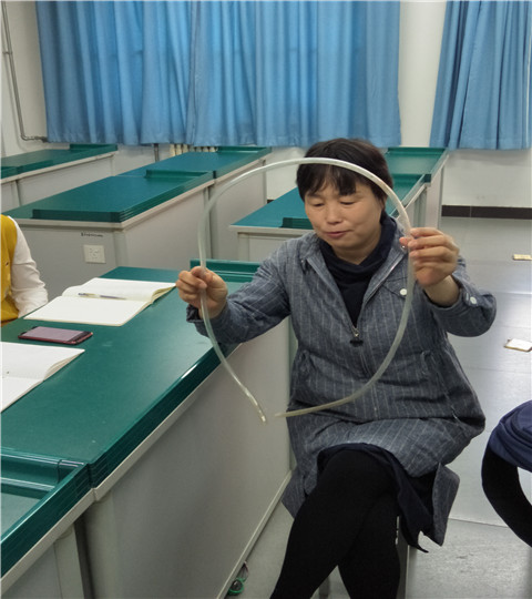 在最后的交流讨论阶段,各位教师分享和交流了自己的教育科研方面的经历和思考,并且产生了新的火花。在怎样设计进行低成本实验导入液体压强新课的讨论中,李宇晔老师根据周老师的建议,设计出先在低位软管中加满水,然后抬高软管并压裂水桶的情景。这个情景能帮助我们激发学生进行有效提问,获得了与会老师们的好评。本次讲座对于促进物理组的教育教学以及教研有积极作用。