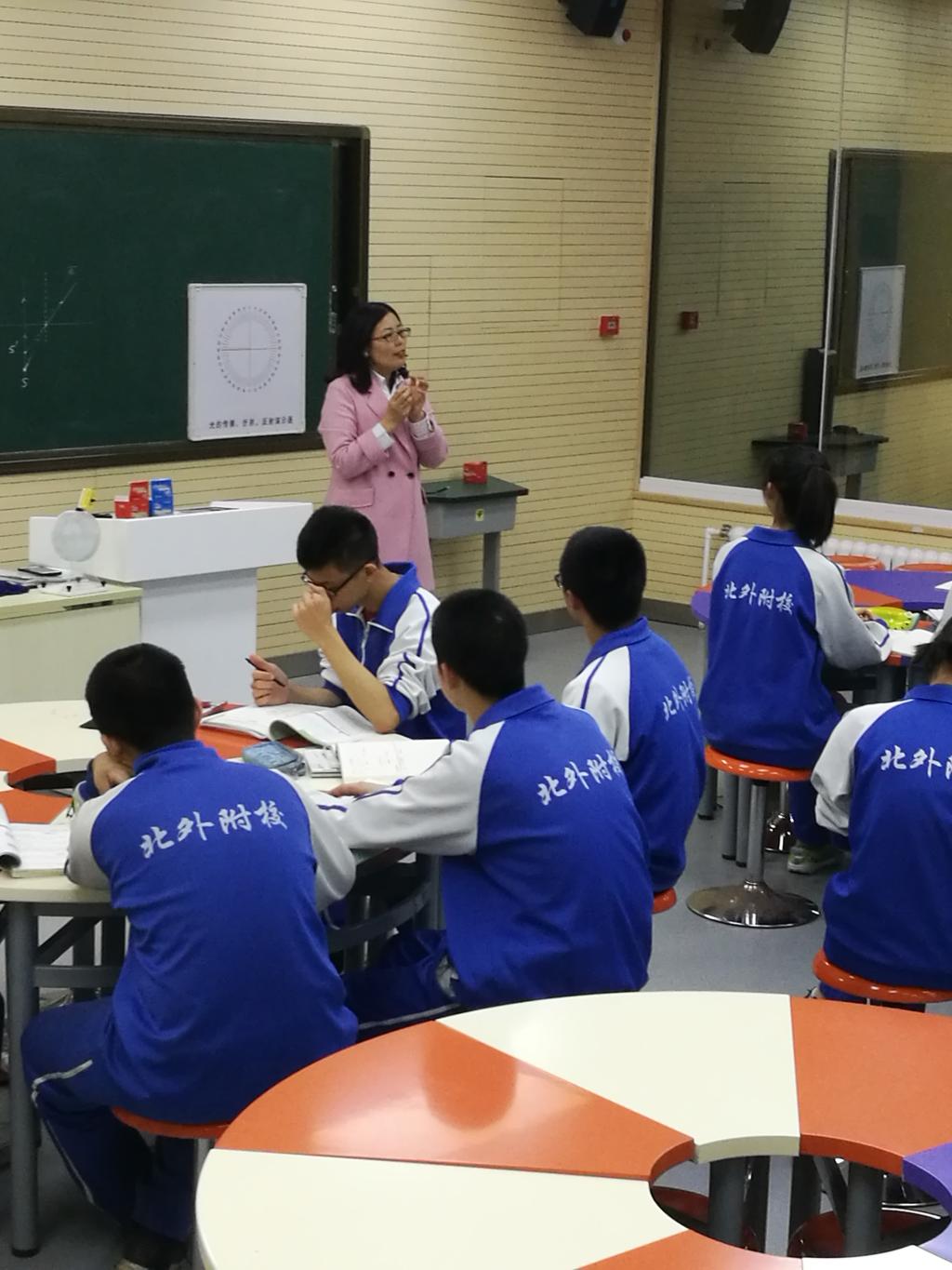 2019年4月3日高中物理老师常香然在高二上了一节“光的反射和折射”的公开课。教学设计充分体现了课题研究的内容,重点关注了学生课堂实际获得知识的效果,课前充分了解了学生的知识储备情况,设计出了符合本班学生实际情况的课堂教学。这节课的整体设计思路按照学生的认知规律从现象到本质,从定性到定量,由浅入深。