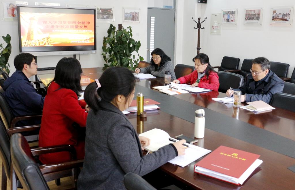 4月9日下午,我校在209会议室召开党总支理论学习中心组学习会,此次学习会主题为“深入学习贯彻两会精神,促进附校高质量发展”,党总支成员参加会议。会议由组织委员王静主持。