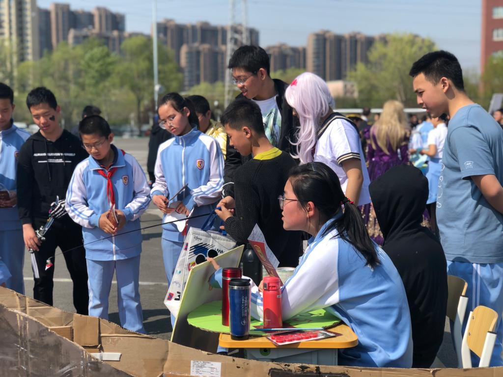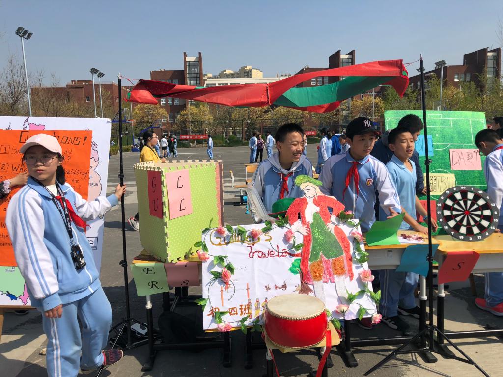 游行结束后,同学们在操场上摆开了丰富多彩的游戏摊位,大家穿梭其中,参与游戏,收集印章和贴纸。学生会的同学则扮成经典作品中的人物融入其中,作为隐藏角色给大家提供答题和领奖的机会。外教们也受邀参与了本次活动,和同学们共同体会嘉年华的魅力。