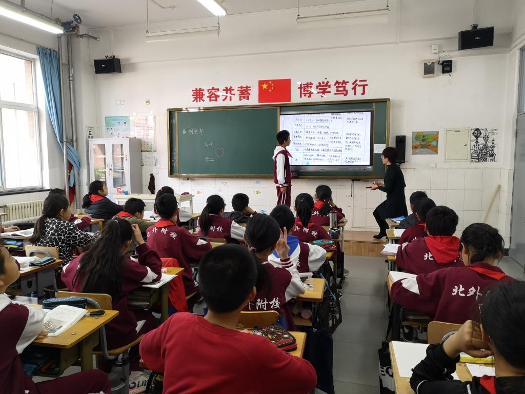 六年级石霞老师执教北师大版六年级下册的“告别童年”,这个单元是小学阶段的最后一个单元。其编排意图是引导学生在即将升入中学这一人生转折点上,回顾自己走过的路,感恩师长的关爱,满怀信心地迎接未来。《学步》和《在学校的最后一天》分别是抒情散文和叙事散文,前者抒发了父辈对孩子的希望,后者表达了浓浓的师生情。课上,石霞老师引导学生在整体感知这两篇文章内容的基础上,体会文章的表达方式,学习夹叙夹议、寓情于事的写作方法,即直接抒情和间接抒情的方法。读写结合,将童年生活中的一件小事以片段的形式写出来。本节课,石老师努力尝试单元整体教学,鼓励学生写真事,抒真情,做真人,对学生的文风和学风有一定的积极影响。