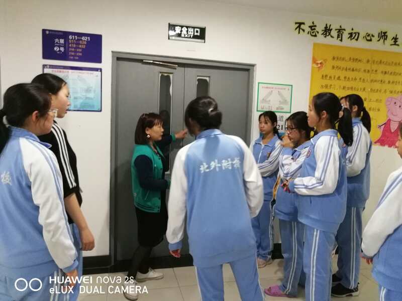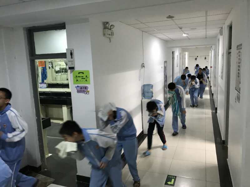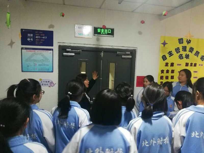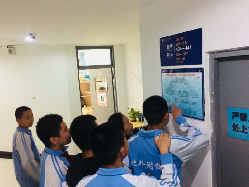 本次活动主要围绕着防火、防震、防突发事件展开,同学们在生活老师的带领下认真学习了消防安全知识,如:灭火器如何使用、不带违禁品回宿舍,勿将易燃易爆物品靠近电源,及时关闭电源等等。各管辖区域的生活老师们还为同学们仔细讲解了宿舍区安全逃生图,熟悉宿舍安全逃生通道和防火门的使用。