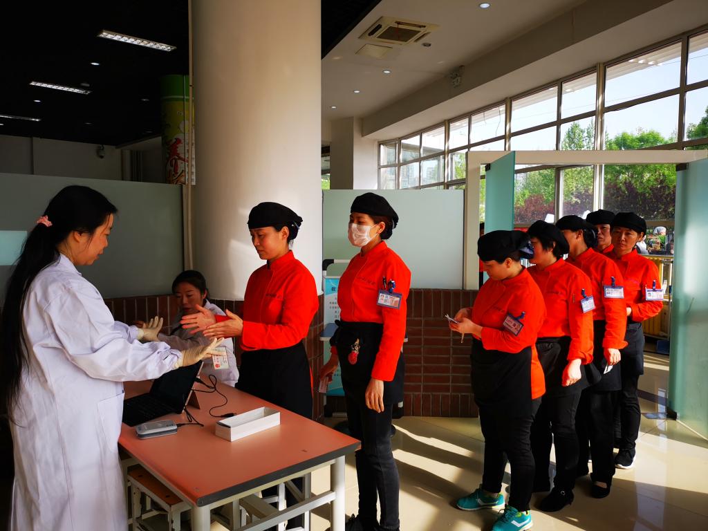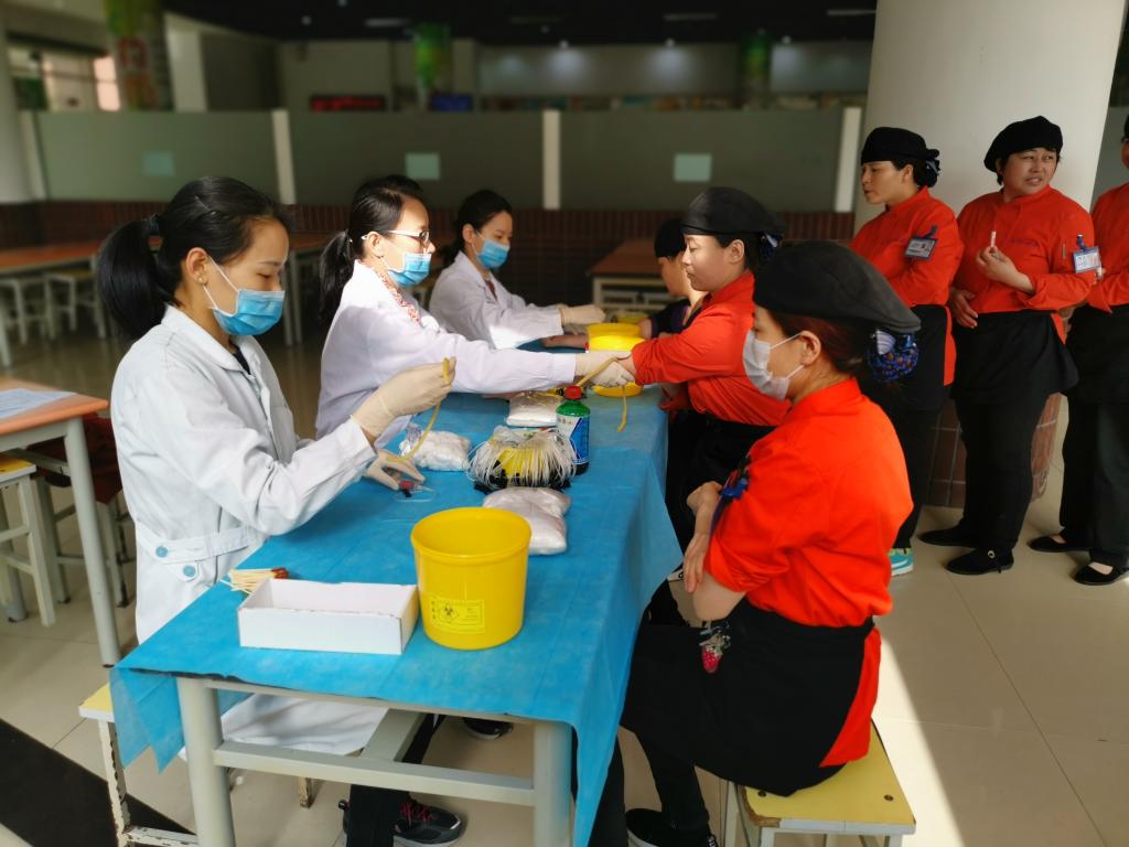 为落实食品安全责任,确保每位餐饮从业人员的健康,4月19日,我校饮食中心联合北京市海淀区预防医学会海淀区健康门诊部为食堂员工进行健康体检。此次体检包括抽血、胸透、肝功能等项目,由防疫站单位派车辆和工作人员到我校进行一站式服务。