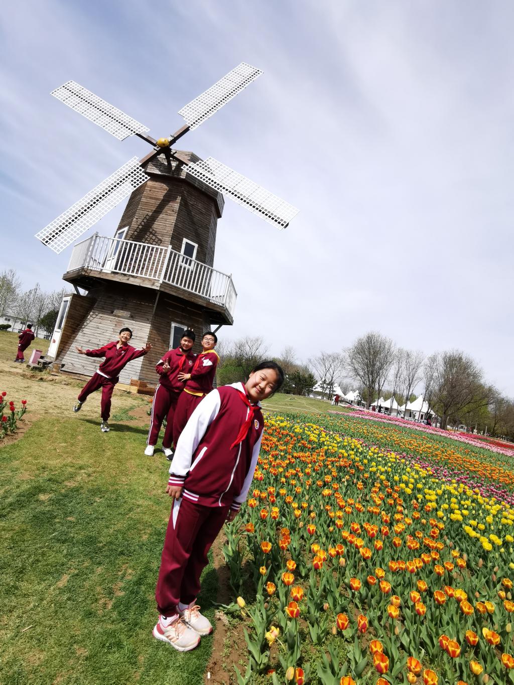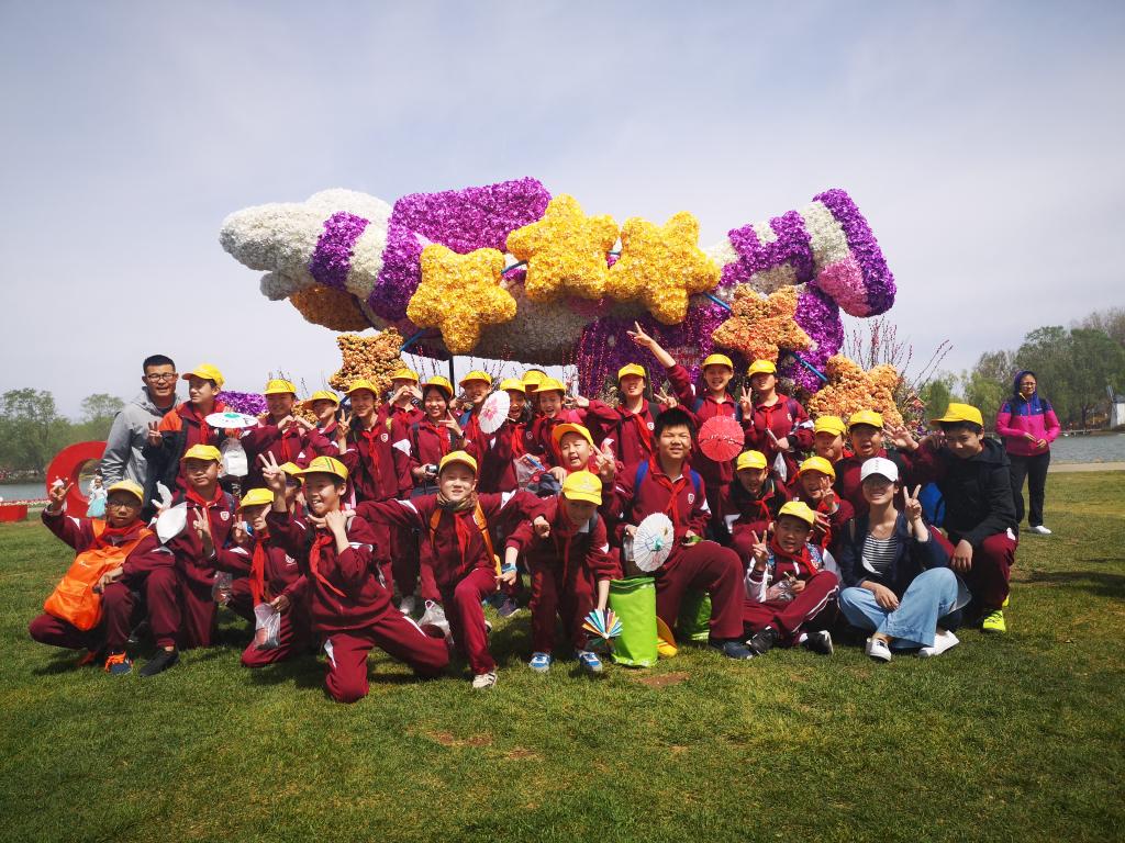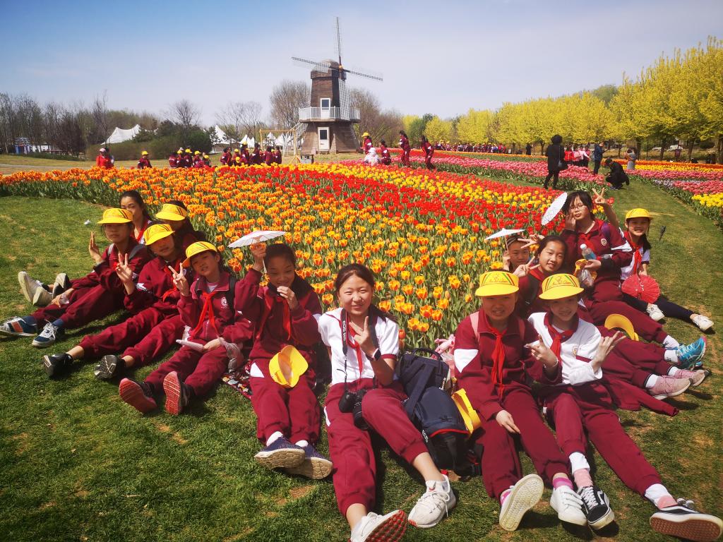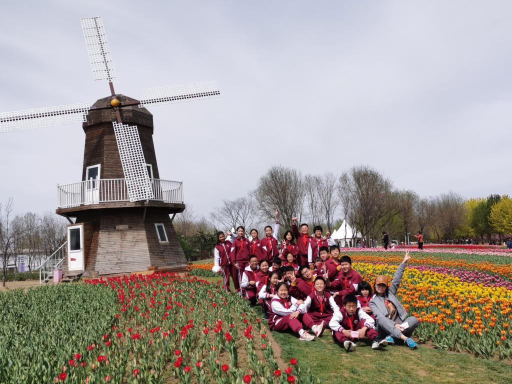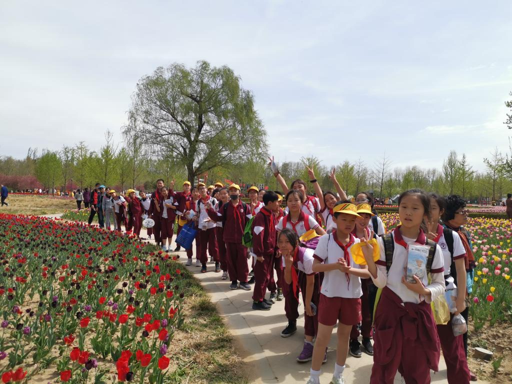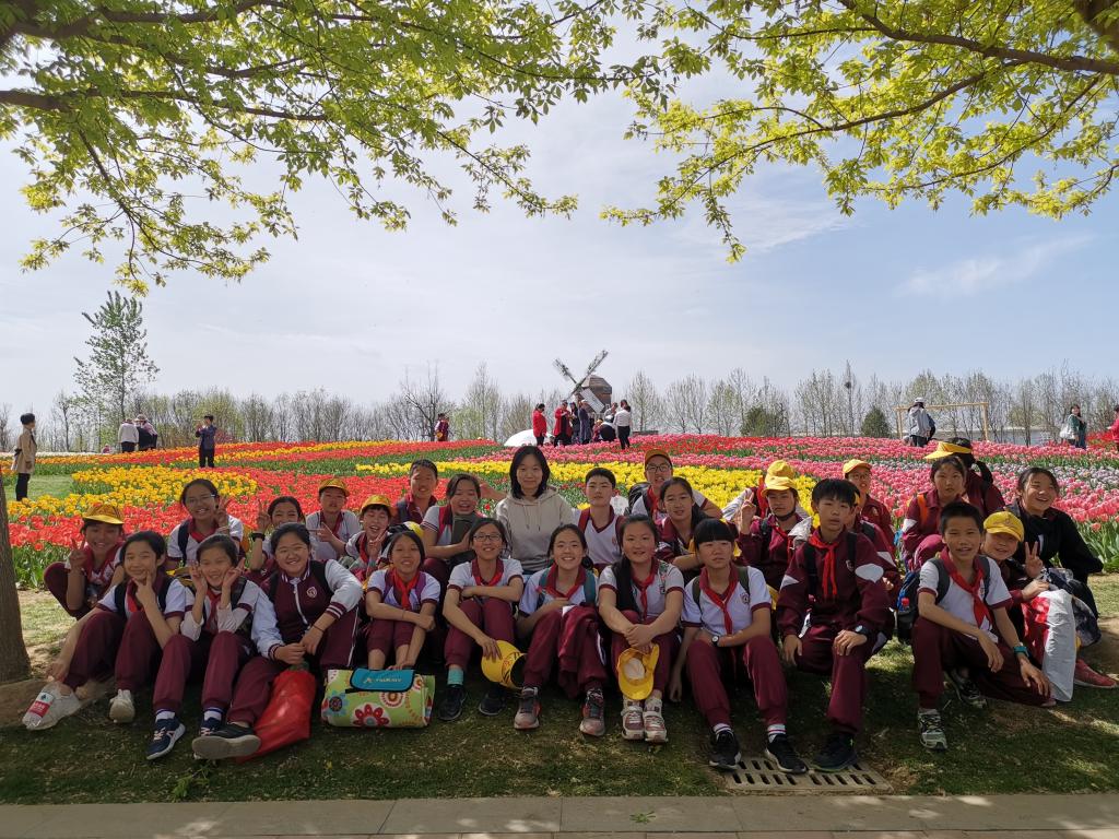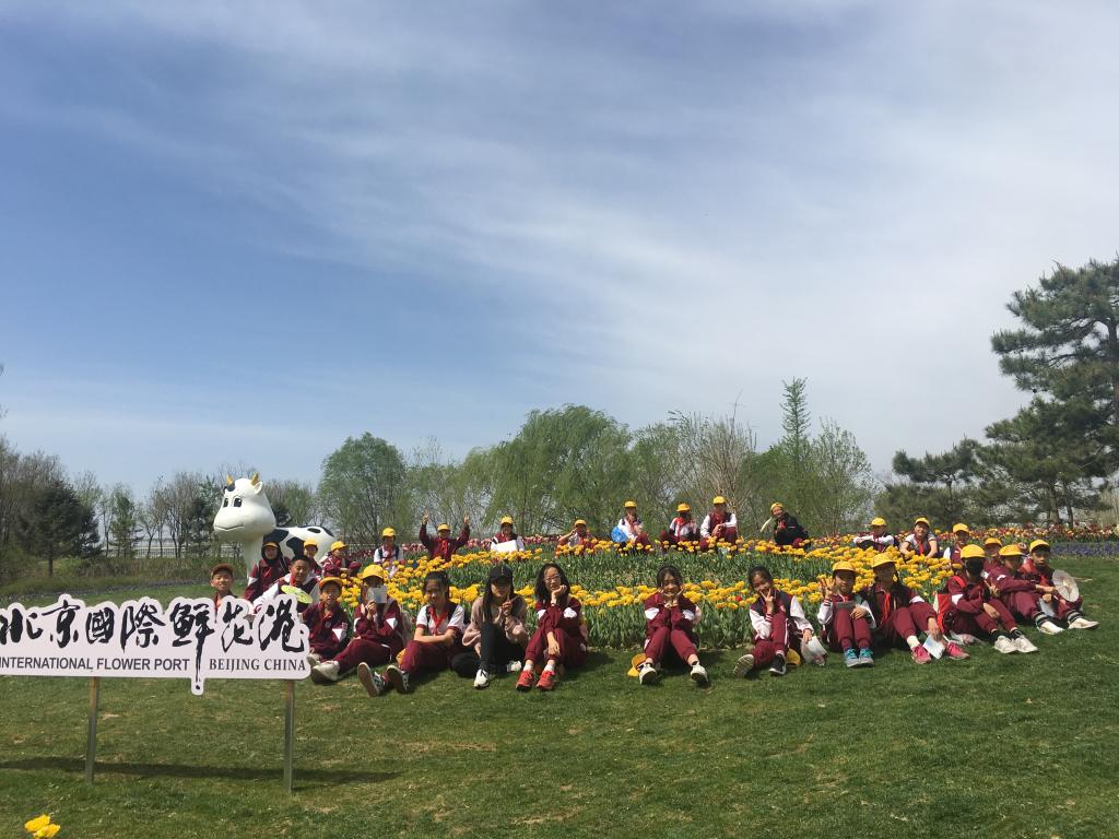 四月,恰逢“百般红紫斗芳菲”的踏青赏景好时节。4月18日,我校六年级的全体师生来到北京顺义国际鲜花港开展社会实践活动。