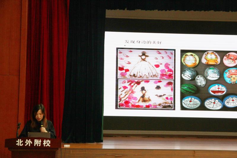 美育不仅仅是在美术课堂中的呈现,更是来源于生活中。美术曲怡霏老师在报告中指出要利用多种资源,尝试新型美术教学,用科技手段理解美术知识。带着善于发现美的双眼,用创新型手段打造校园文化氛围,创建我校的校园艺术特色,如用渐变色涂鸦旧栅栏,绘画装点井盖等,让学生参与到学校美育氛围的营造中来,培养学生热爱校园的情感。