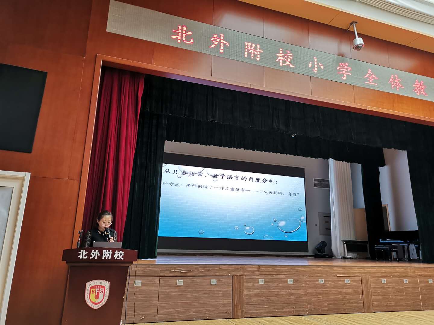 4月19日下午,我校小学全体教师会在国瑞厅举行。由科学组尹小楠老师,英语组刘佳主任、朱小玲老师,音乐组任杏娜老师,美术组曲怡霏老师,数学组佟欣老师以及语文组陆作静老师作主题报告。小学执行校长刘宏利,副校长孟娜、李琳、孙亚楠,德育主任刘沛参加此次会议。小学教科室主任刘蕾主持本次会议。