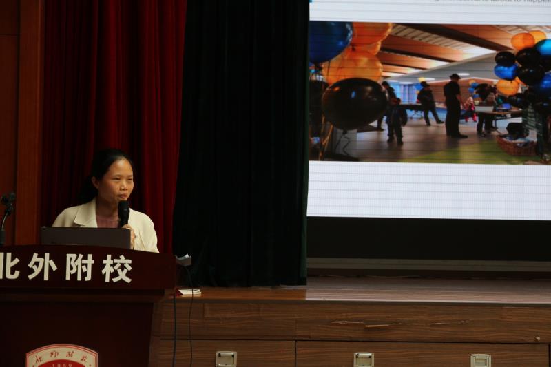英语组刘佳和朱小玲两位老师分享了赴加拿大多伦多大学学习的心得体会。刘佳老师介绍了此次多大学习的课程主题、课程体系、授课教师的教学风格及课程活动设置等,通过照片为大家讲解了多大教师的教授方式注重言传身教:现场教学示范如何将教学理论融合到学生的学习行为之中,培养学生的思维能力。朱小玲老师介绍了实习学校的校园,班级环境,特色课程体系,班级日常管理方法,包括探究式学习、小组合作学习等教育理念和实践运用,以及具有北美特色的校园活动等。