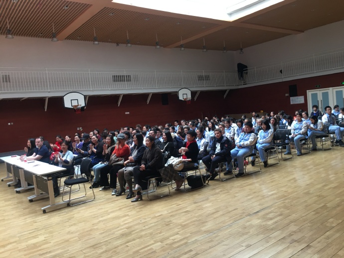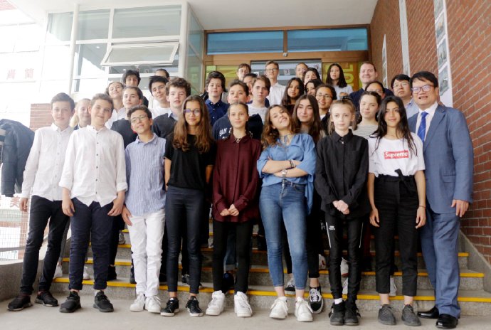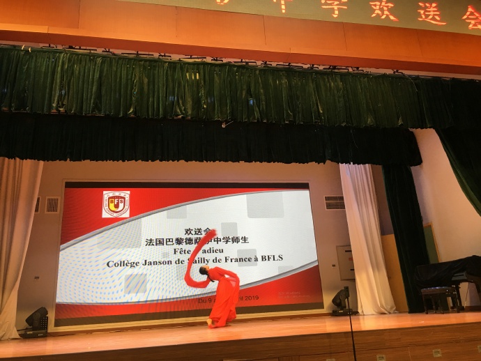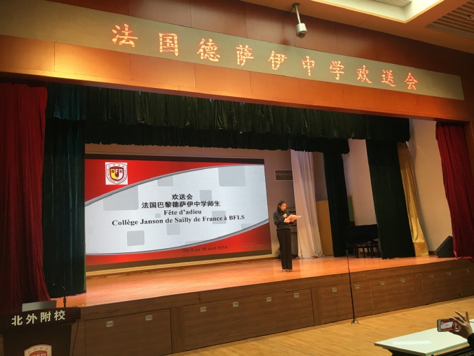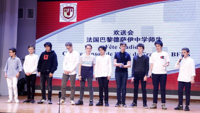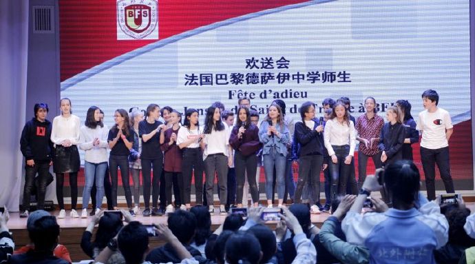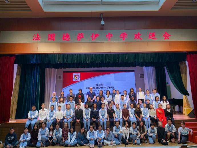 最后,中法两校领导、师生一起上台合影留念,在声声快门中,2019年巴黎德萨伊中学和北外附校姊妹校交流北京之行欢送会缓缓落下了帷幕。