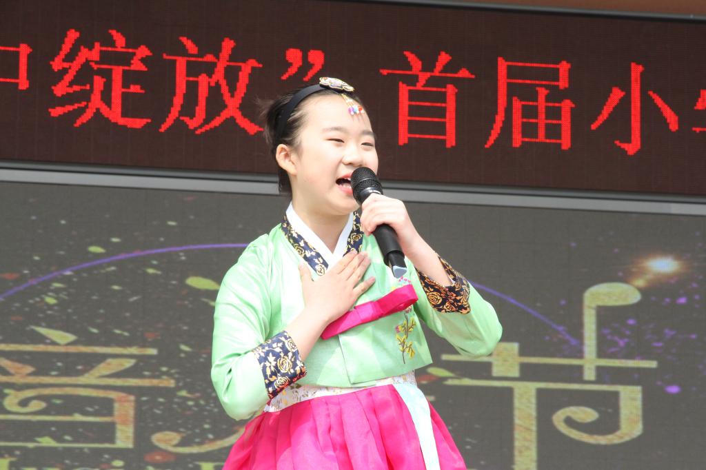 开幕式第三项“多彩童年 闪亮你我”文艺汇演。节目精彩纷呈。首先,是由五年级学生表演的《幸福像金达莱一样》,孩子们用优美的歌声诉说童年的幸福。