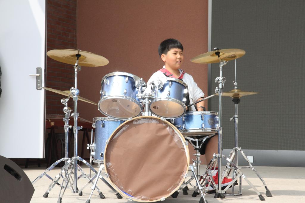 刘校长话音刚落,激情飞扬的架子鼓表演《青春修炼手册》将开幕式推向了高潮,活力四射的小鼓手、动感的旋律,校园中处处撒满跳动的音符。在孩子们热情的欢呼声中小学生音乐文化节正式拉开了帷幕。