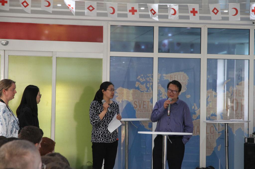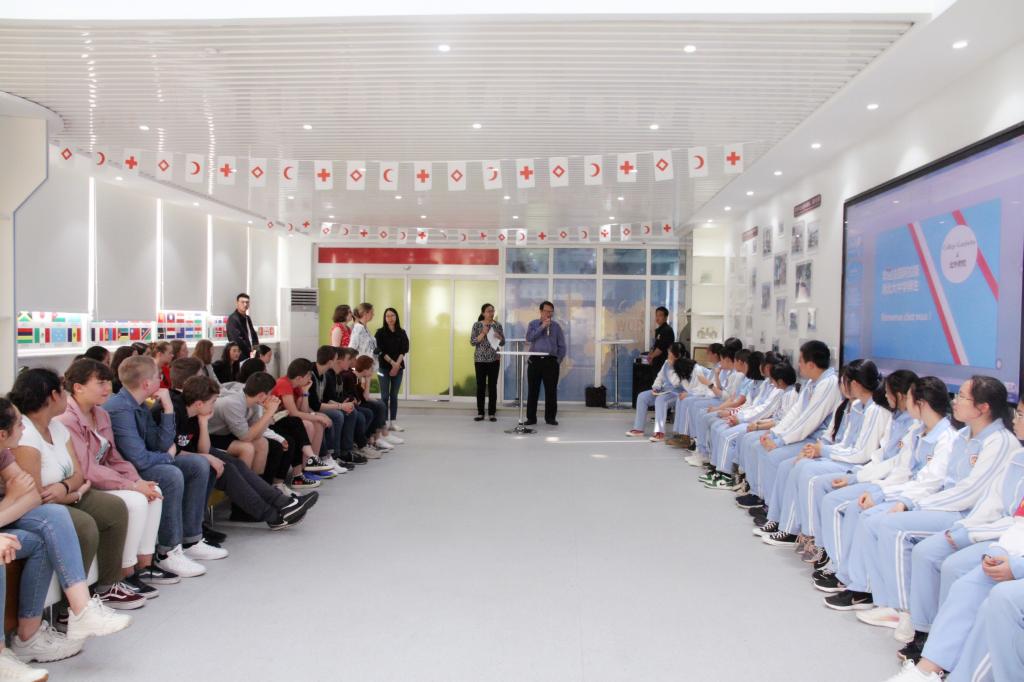 林卫民在欢迎词中指出这是自2015年北外附校与港北大中学建立姊妹校关系以来,该校第二次选拔学生到访我校,我校初一年级法语学生即将在5月底第三次前往该校研学交流。国际展厅中陈列的厚厚的阿拉斯市纪念册见证着两校的友谊之路。两校密切的交流互访,有助于促进双方学生学习语言,开拓视野,既增进了彼此间历史文化的了解,更有机会近距离深入交流小伙伴的家庭,了解对方最真实的生活、学习节奏,从而加深彼此的理解与包容,增进彼此的友谊。林卫民强调,我们之所以把此类活动称之为研学交流,首先是研究,需要同学们带着思考参加每天的活动,才能够有更多的收获,以到达交流的目的。林卫民同时指出,参加研学交流的小伙伴还非常年轻,一周的时间虽然短暂,但是不应该止步于此,要多多利用现在发达的网络资源,保持长期的互动,让彼此成为一生的朋友,希望此次研学交流为所有同学留下最美好的记忆。