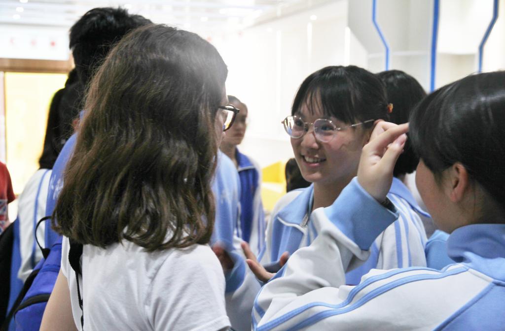 盼望已久的相识环节终于到来了。在经过了微信和邮件往来后,学生们终于可以面对面交流。老师们逐一读出学生名字,中法小伙伴逐一走到台前相识。同学们有的腼腆,略有陌生感,有的则非常活跃,仿佛彼此相识已久。曾经的文字和照片交流变得更加立体,让所有小伙伴都激动不已。