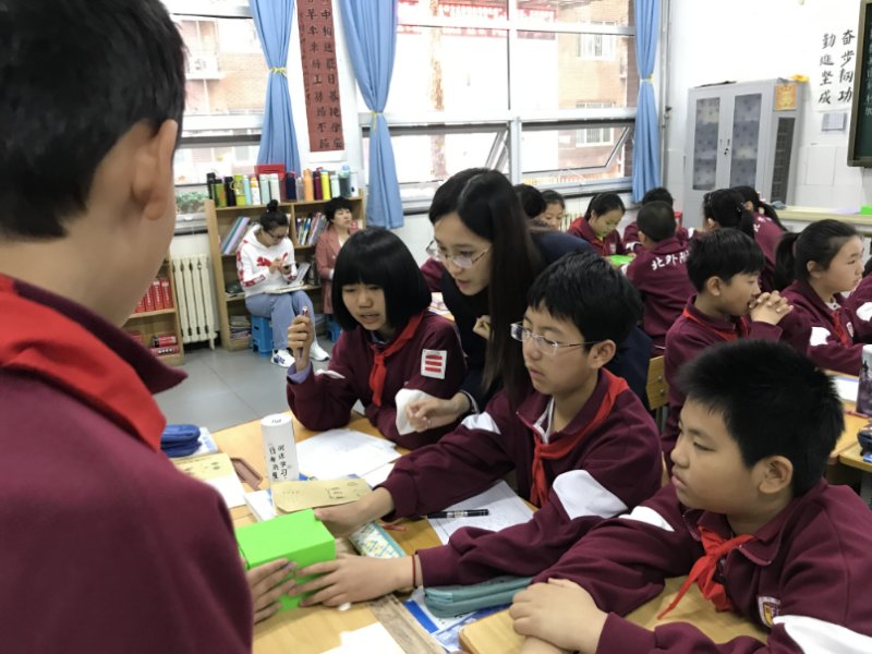 第二天,校长团的老师再次走进初春老师的课堂,她在五4班执教一周一课《包装的学问》。本节课初老师从生活实际包礼物出发,探讨从节约包装纸的角度如何包装更节约包装纸。通过小组合作利用表面积等有关知识,探讨多个相同长方体叠放的方法以及使其表面积最小的策略,体会策略多样化。整节课气氛活跃,学生有机会充分表达想法,在动手操作中体验解决问题的基本过程和方法,提高了解决问题的能力。本节课是“数学好玩”中的内容,老师放手让学生自主进行探索与研究,不仅让学生获得结论,更让学生经历研究、探索的过程,积累了活动的经验,深刻感受数学的趣味性和挑战性,体会数学与生活的密切关联。