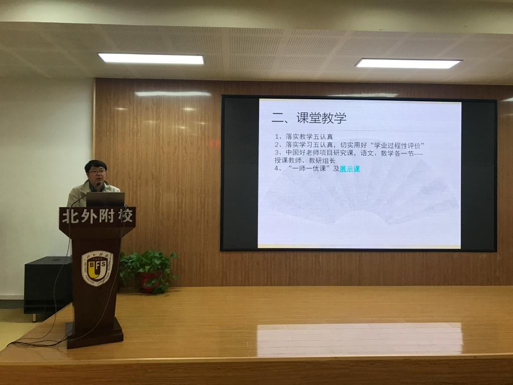 杨磊从期中考试后的教育教学相关工作、德育工作、教师工作、招生工作以及工作纪律几个方面进行了总结。首先,他强调了教师必须做好期中考试质量分析工作,其中包括以教师个人、备课组和教研组为单位上交质量分析表,将质量分析中得出的问题落实到人等。另外,教师应继续坚持贯彻教学五认真原则,用好“过程性评价量表”,对学生给与恰当的、综合的评价并以此促进学生进步。他还就近期参加“中国好老师”项目进行汇报的研究课提出了工作要求。然后,他对期中考试后家长会和学生表彰会的工作进行了部署。再次,杨磊对德育工作进行了总结。他要求学生管理要从做好小事,管好小节起步。他强调要提升学生道德素养,加强教育学生遵守礼仪。最后,他强调了劳动纪律的重要性,要求严格教师考勤,严禁违反师德的行为等。