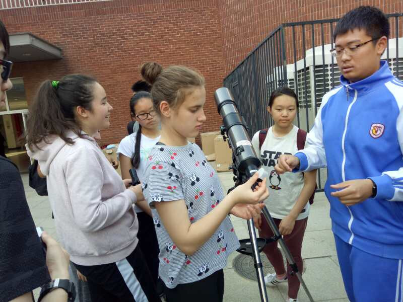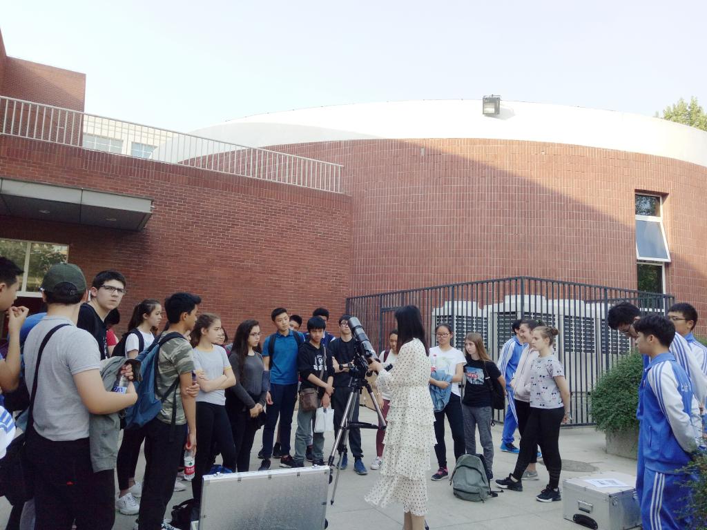 5月9日下午,一群来自法国的师生走进了我校高中校本选修课“天文爱好者”的课堂,与我校天文爱好者共同上了一节生动的天文课。他们来自距离北京经度114°的法国大诺瓦西国际学校姊妹校。