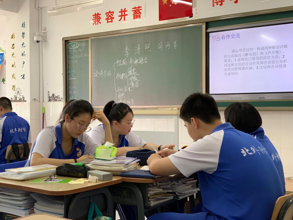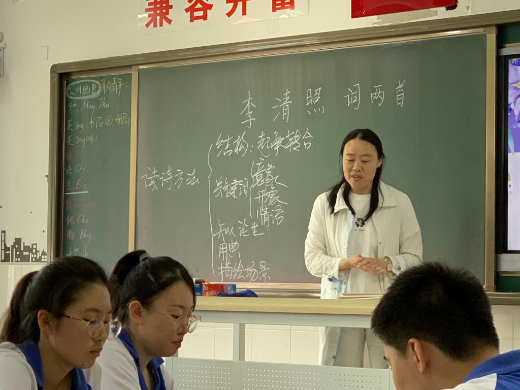 5月9日上午第4节课,高中语文组任健老师在高一(1)与全体同学一起完成一堂别开生面的课题研究课——《李清照词两首》赏析。