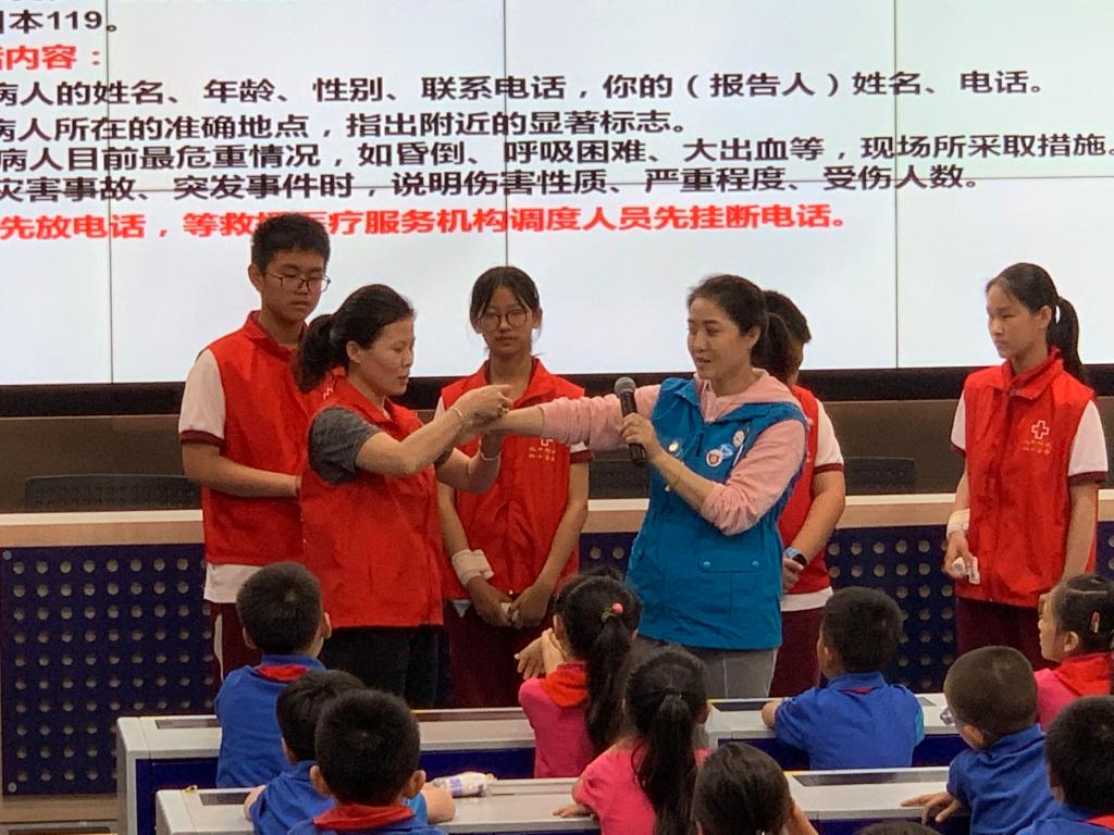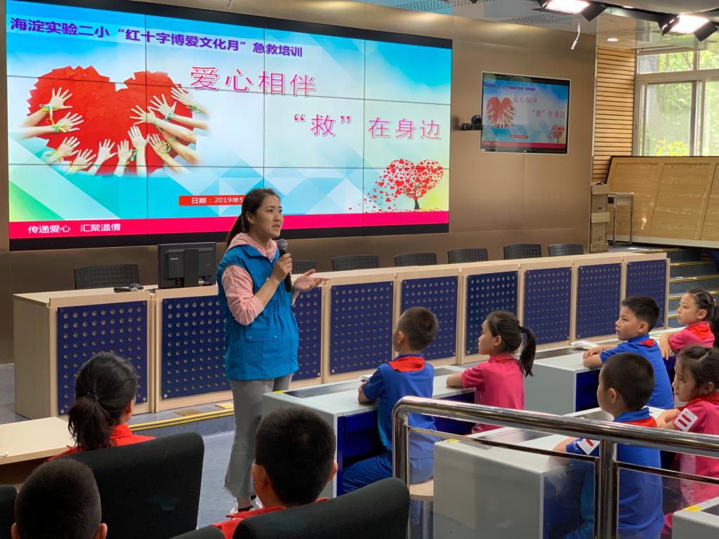 2019年5月16下午1:00,受清河学区红十字会及北京市海淀区第二实验小学的邀请,我校红十字会急救培训师李洪杰、急救员丁建枝及心理教师高旻六年级六位小红豆儿为该校160名三年级学生开展了一场别开生面的急救知识培训。