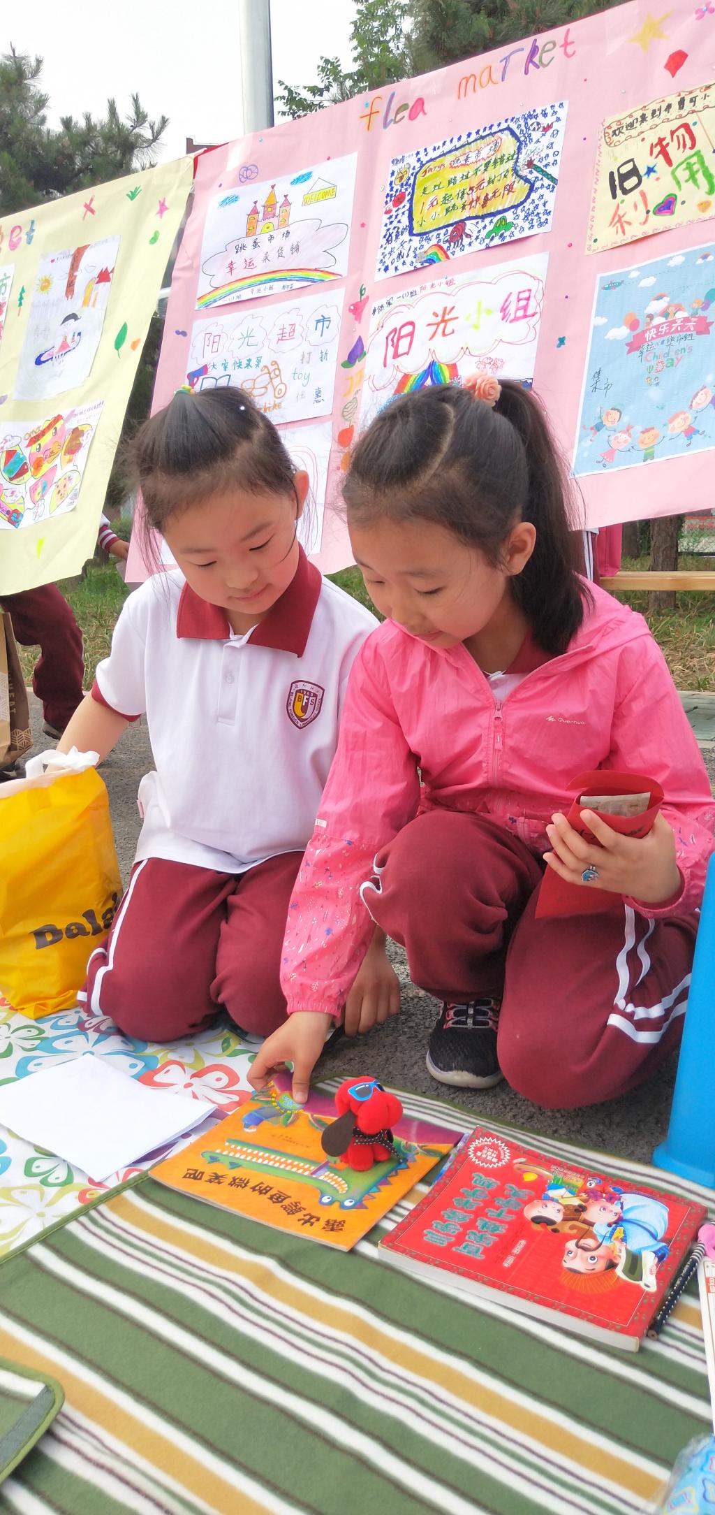 同学们在各个摊位前流连忘返,仔细地挑选着想买的物品,激烈地讨价还价,淘宝和交易的热情跟每一张笑脸一样灿烂。