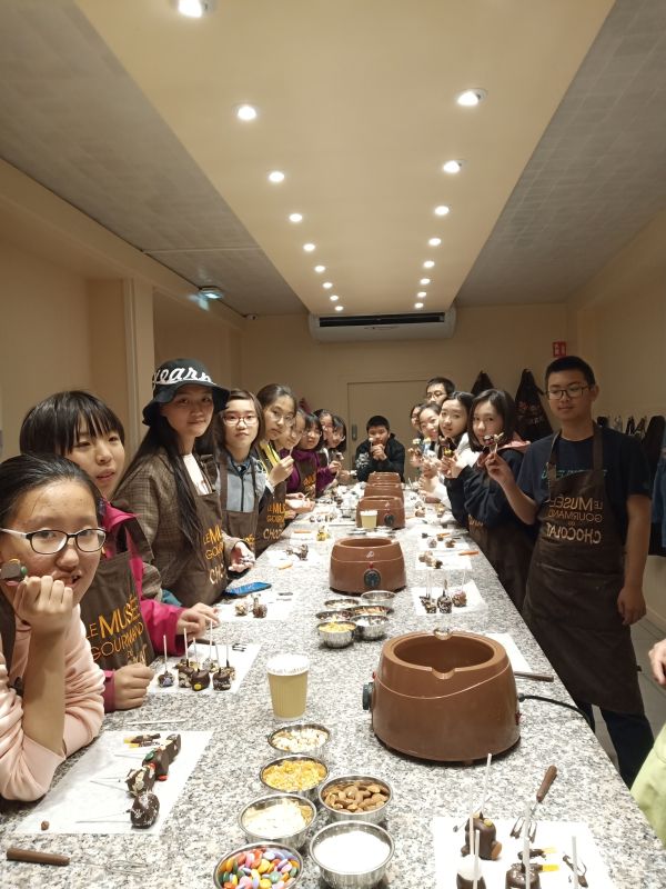 在巧克力博物馆中,学生们先是品尝了不同口味的巧克力饮品,接着在工作人员的讲解下了解到巧克力的发展史,在制作手工巧克力过程中学生们发挥了独特的创造力,设计精巧。
