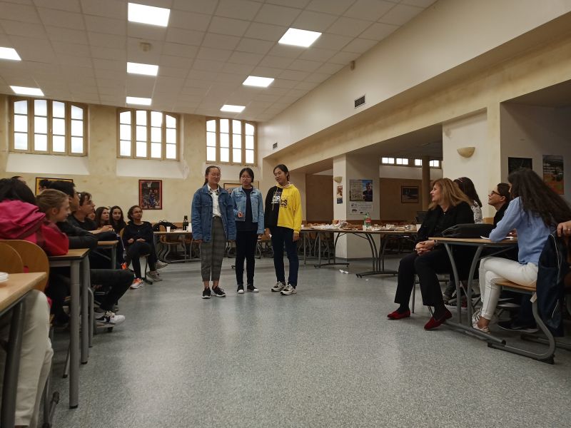 欢送晚会上,德萨伊校长Anne先生出席讲话,对双方老师辛勤付出表示感谢,并希望继续两校加强合作。法方家长出席欢送会并为学生们带来晚餐食物。在交流期间,我校学生跟对法方小伙伴学习了法语绕口令,在欢送会上为大家展示成果。我校楚丛宇表演的古典舞将整个晚会推向高潮。最后我校学生集体合唱《Ce n’est qu’un au revoir》,赢得了法方学生及家长的集体喝彩。