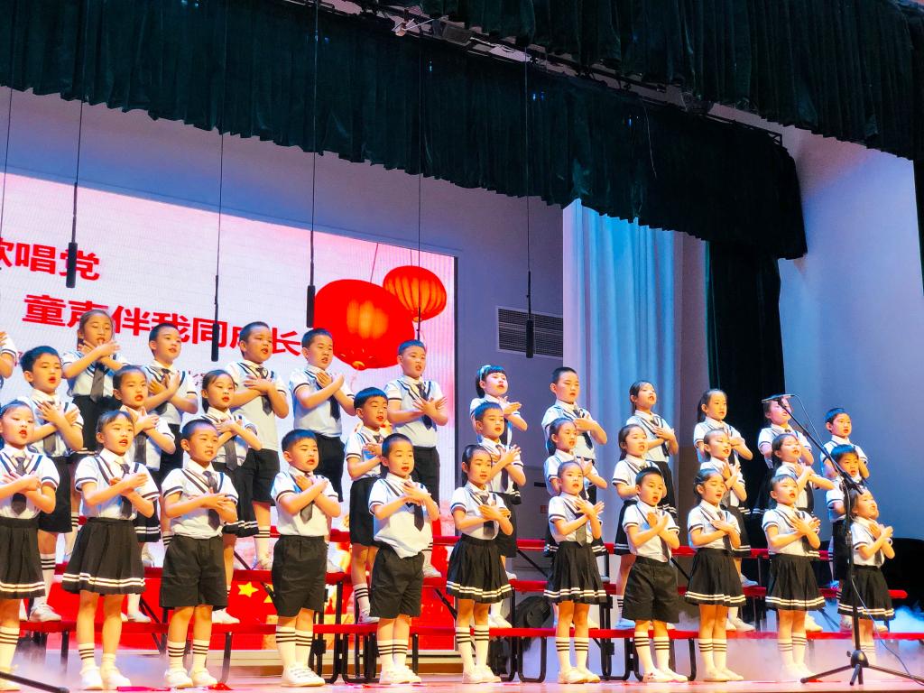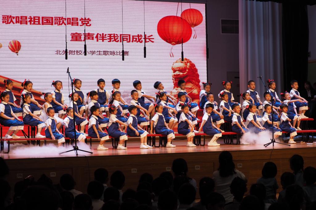 为活跃和丰富校园文化生活,营造和谐向上、健康文明的校园文化气氛和艺术教育环境,提高学生艺术表现力,创造力和审美能力,为学生提供锻炼的机会,展示同学们的文艺特长,展现校园文化风采,培养团结合作精神,不断提升学生的综合素质。达到“班班有歌声、人人都参与”,促进学生全面发展和校园和谐发展。5月20日,一年级的孩子们在各班音乐老师和班主任的带领下,从精选儿歌到歌曲演唱,从动作表演到舞台形式变化,关注每一个细节,呈现了一场惊艳的视听盛宴。