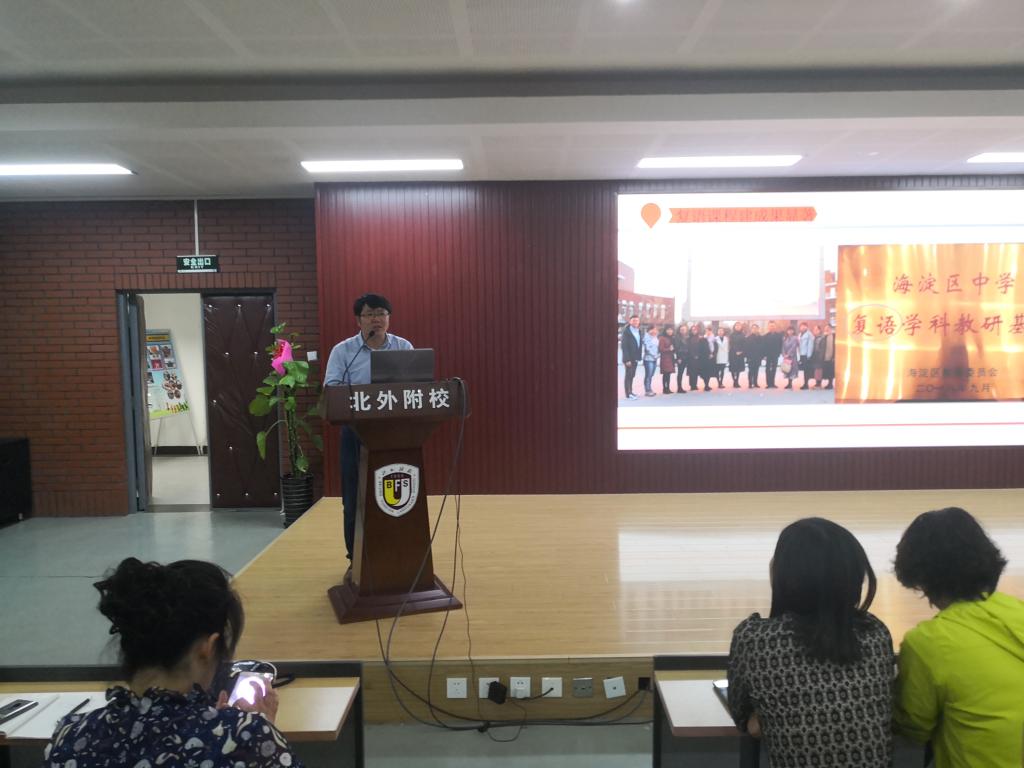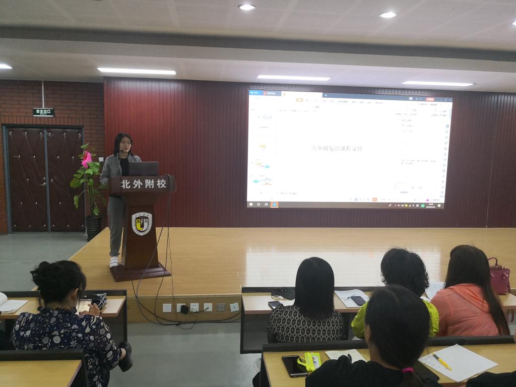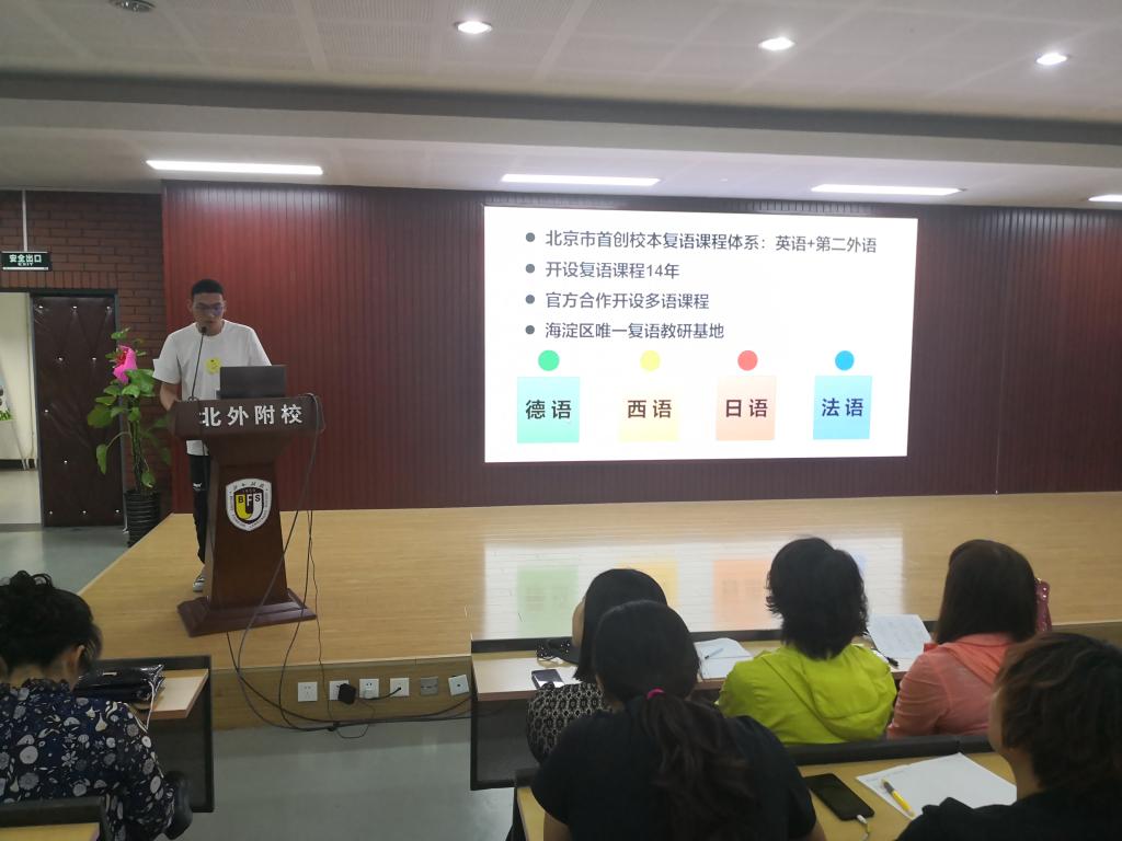 之后,初中执行校长杨磊在第二阶梯教室进行了小五复语课程与小升初衔接强化课程的方案解读,廖沧龙主任对复语一贯制学习开设语种的学科重要性、复语教师的师资与学习的前景进行了介绍,最后小学教务处副主任宋花磊对语数英强化班进行了详细的说明。
