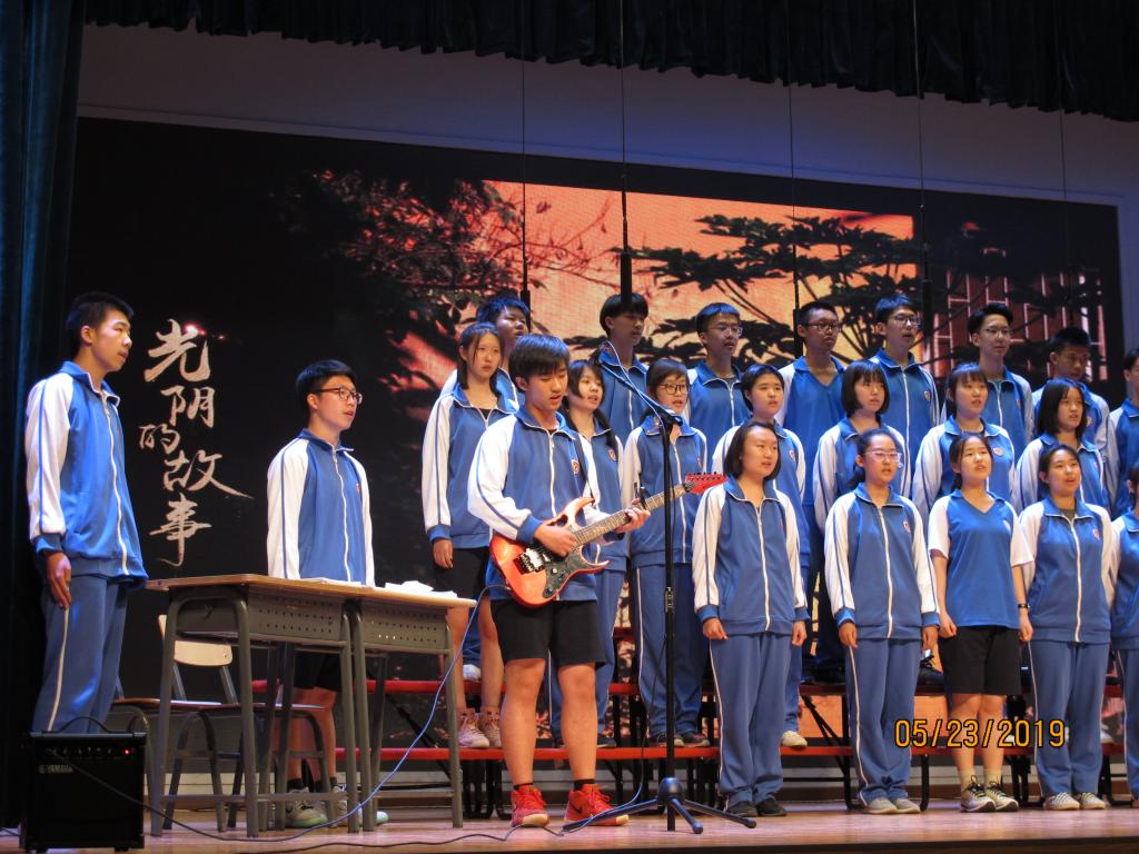 各班对表演内容进行了精心的设计和充分的准备,展现了高中生饱满精神风貌和强大的凝聚力。在自选曲目环节,既有《我爱你中国》这样经典的爱国歌曲;也有《夜空中最亮的星》等青春励志曲目,值得一提的是,有两个班级分别演唱了由同学自主填词的班歌《无双》和《北京东路的日子》,用歌声表达对班级和学校的深厚感情。