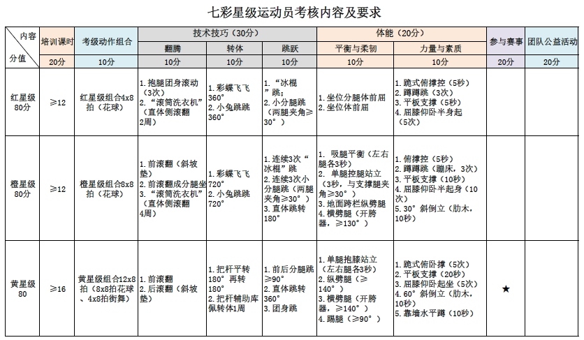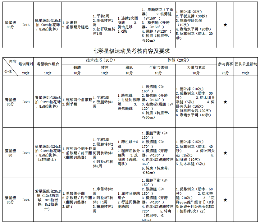 附:啦啦操七彩星级简介