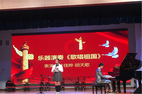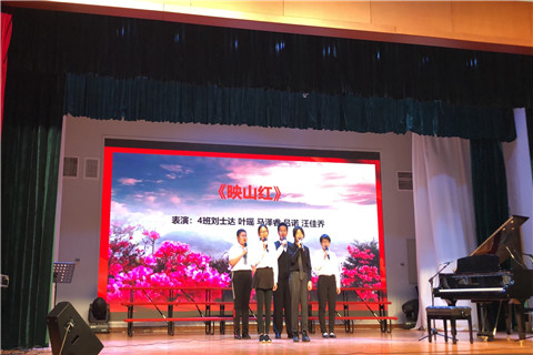 最后,(3)班带领全体同学领唱《我和我的祖国》,此次的活动最终在同学们激昂热烈的歌声中顺利结束。通过这次的活动,同学们不仅欣赏到了一出出精彩的表演,还激发了同学们的爱国热情,同学们怀着一颗爱国之心,永远铭记着艰苦卓越的斗争历史,为实现中华民族伟大复兴的中国梦而不懈奋斗!