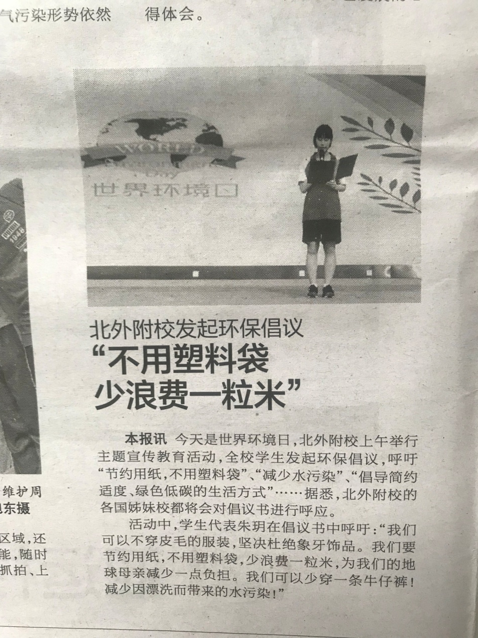 我校中学学生会志愿者社团的倡议引起社会广泛关注,《北京新闻》《北京晚报》等媒体对我校本次活动进行了报道。