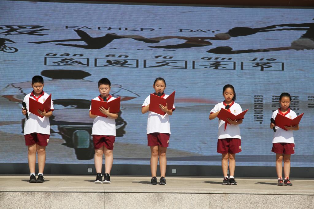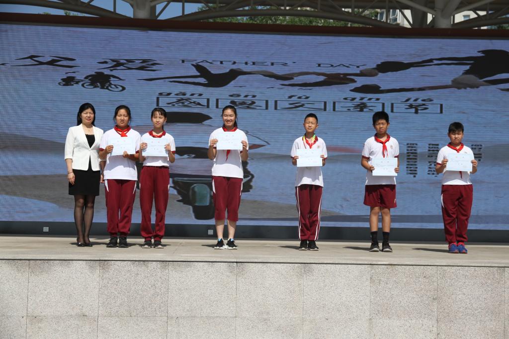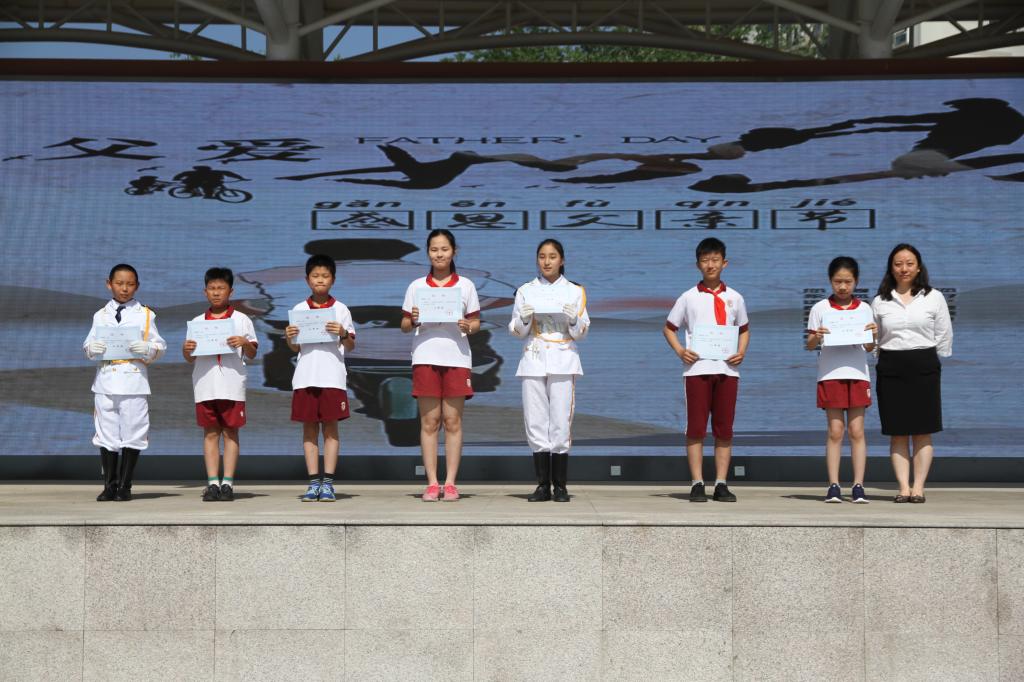 本周由四(10)班师生进行主题为“父爱如山,一路相伴”的国旗下讲话。可爱的小主持人庄重地宣布即将迎来一年一度的父亲节,孩子们分别讲述了从自己出生时父亲是如何风雨无阻,无怨无悔地教自己走好人生第一步的事例,到幼儿园运动会上父亲是怎样用无声的语言鼓励自己跌倒了再爬起来的教诲,到六岁时学骑自行车,父亲严厉的背后是那样深沉地爱着自己的感人故事,再到上小学三年级时工作繁忙的爸爸无微不至地照顾生病的自己的一幕一幕。四个孩子述说在成长中父亲对自己做的点滴小事,感动着在场的每一位师生。