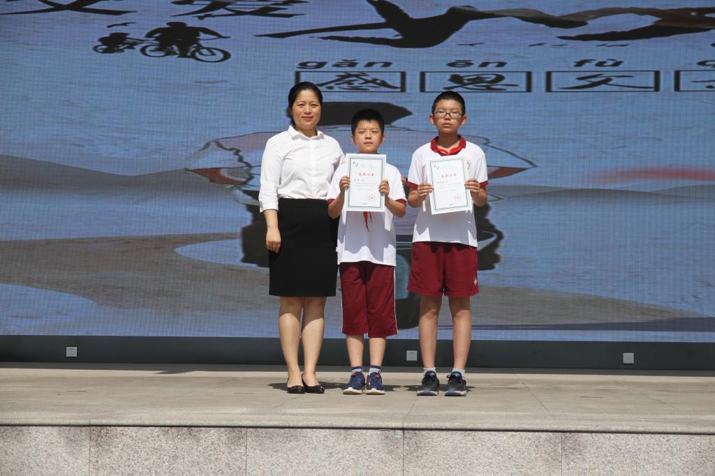 最后,进行了各项比赛的颁奖环节。我校小学领导分别为在第六届北京市中小学生纸飞机赛中分别荣获一、二等奖纸飞机社团六名学生,在北京市天文知识观测竞赛中分别荣获一、二、三等奖小学生,在海淀区青少年程序设计挑战决赛中分别荣获一、二等奖小学生、在海淀区中小学生田径运动会获奖小学生颁奖。