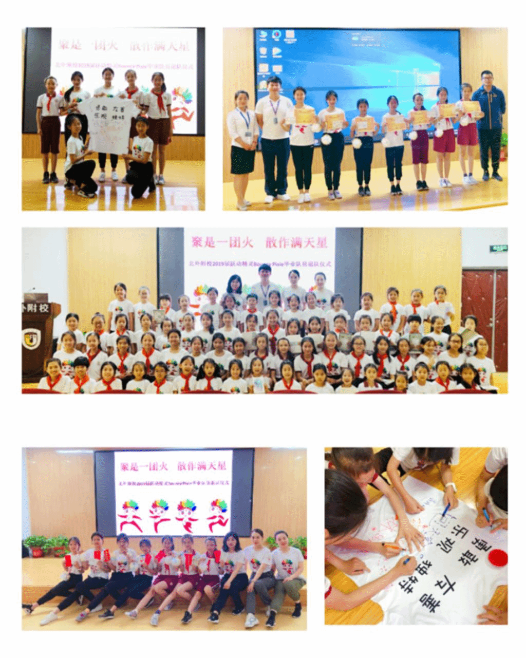 6月10日中午,我校跃动精灵Bouncy Pixie健美操、啦啦操校队全体师生在第一阶梯教室举行了题为“聚是一团火 散作满天星”的毕业队员退队仪式。小学副校长孙亚楠,教务处副主任冯燕,德育处副主任、体育教研组组长李骏参加了此次活动,活动由赵立芳老师主持。