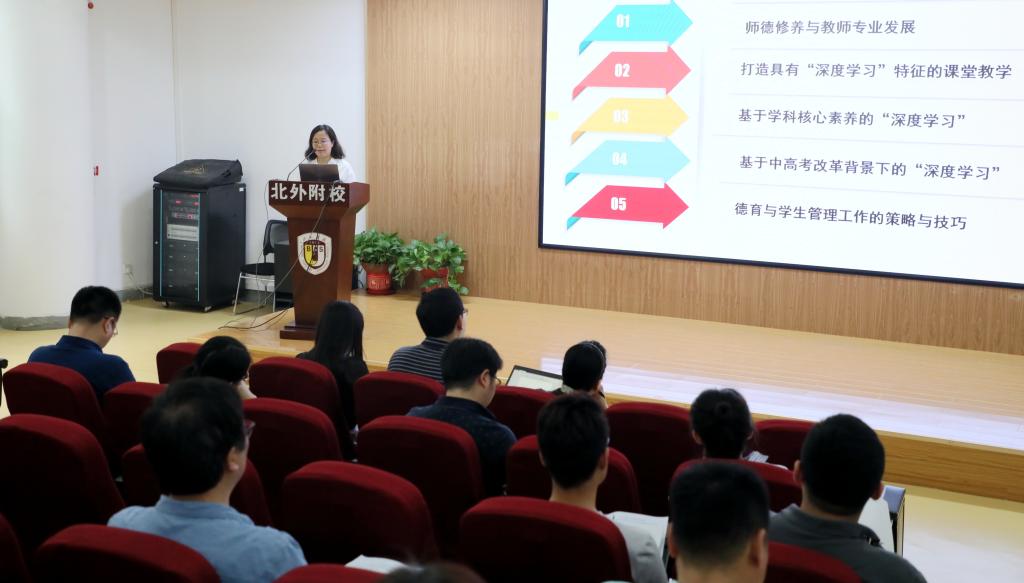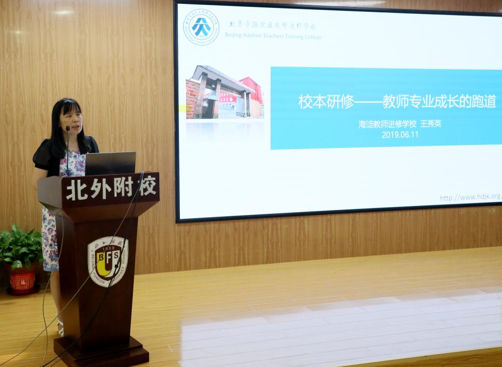 校本研修项目负责人王秀英老师对我校教师培训工作进行了专业点评,她指出,北外附校从学生视角出发体现教师为本的教师发展目标,领导重视,保证机制健全,在需求分析的基础上,基于问题聚焦的主题校本研修模式,分层分岗分学科的“三层”“五课型”的研修体系和研修课程设计和实施,不仅体现了一致性、逻辑性、均衡性原则,还能综合考虑多样性的需求,结合教师发展性评价,教师培训成效显著。同时,她指出,我校教师培训工作不仅可以常态化、系统化,还可以系列化。