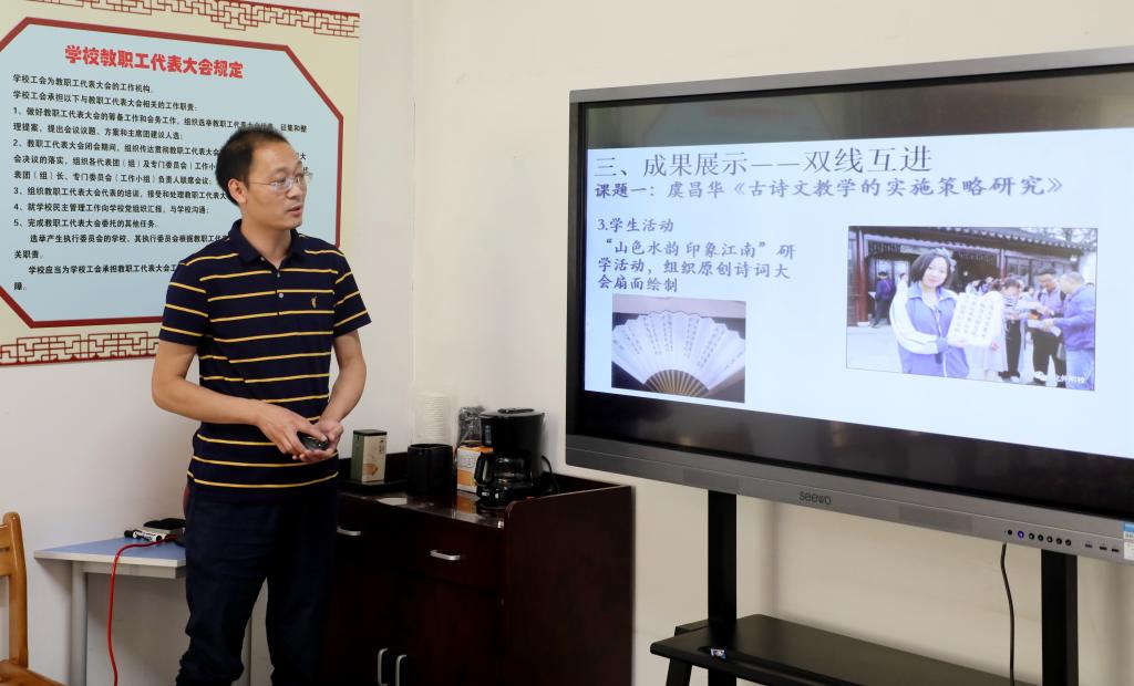 在学科教研组主题校本研修展示活动环节,一次别开生面的跨学段、跨学科校本研修展示活动也引起师训部专家、老师的关注。小学数学组、初中文综组、高中语文组围绕“精心设计学生活动、构建深度学习课堂”的主题,分别进行学科教研组主题教研活动情况介绍、课例展示、校本研修现场展示等环节。来自师训部的领导、专家也对分会的研修现场展示活动给予了精彩点评和指导。