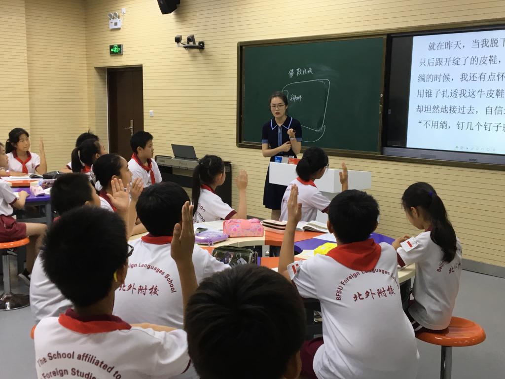 为探索高阶思维在各学段阅读教学中的应用,研究落实语文核心素养的学习方式,6月13日,清河学区语文工作坊在北外附校开展研究课展示活动,呈现中小学五个不同学段的现场教学。活动特邀北京教科院基教研中心小语教研员闫勇老师为点评专家,参加活动的有清河学区语文工作坊成员和各校语文主管干部、骨干教师40余名。