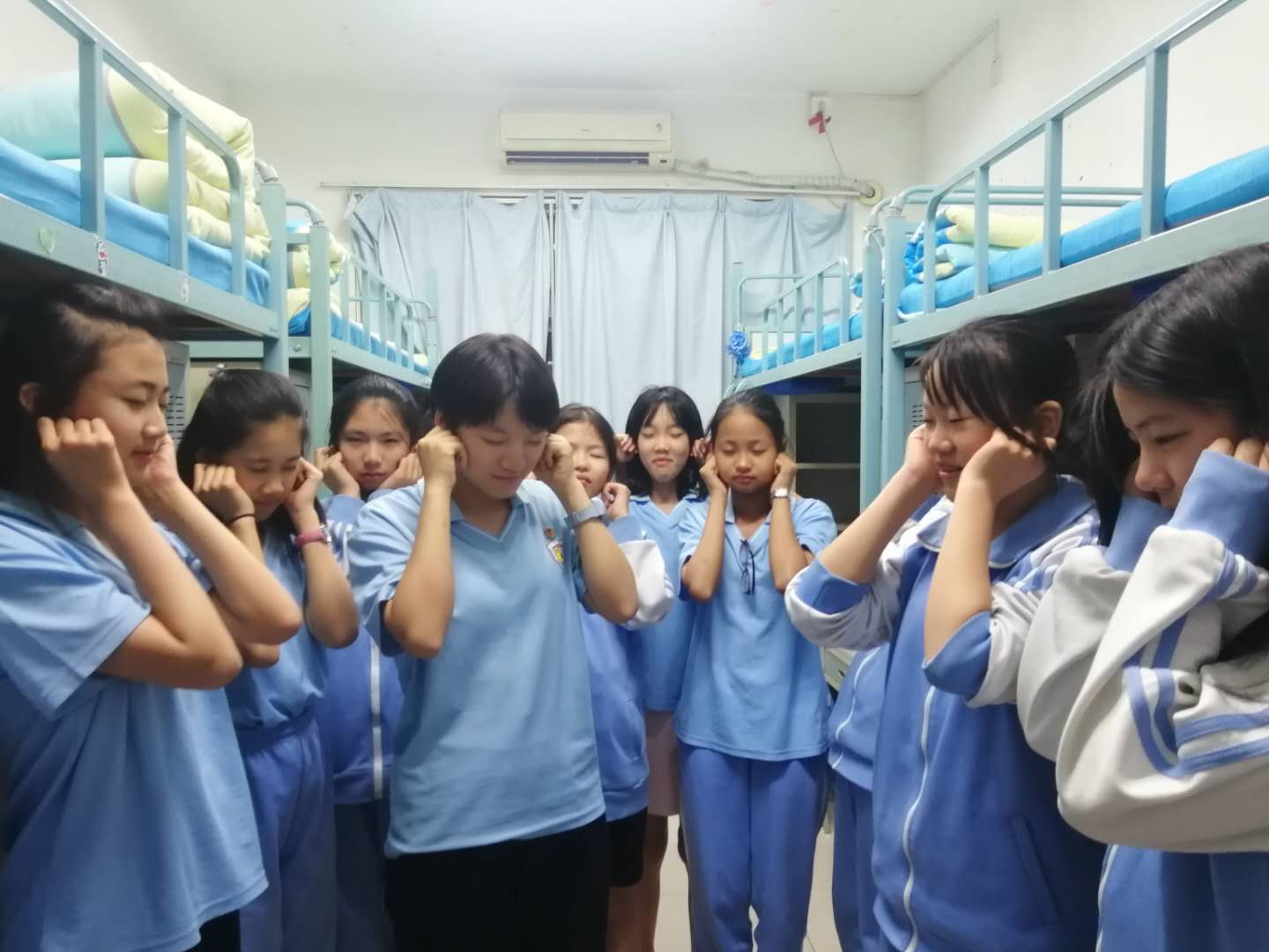 6月5日,北外附校宿管中心初一、初二生活老师组织学生们在晚自习回宿后开展“眼亮则心明,远离近视眼”活动。