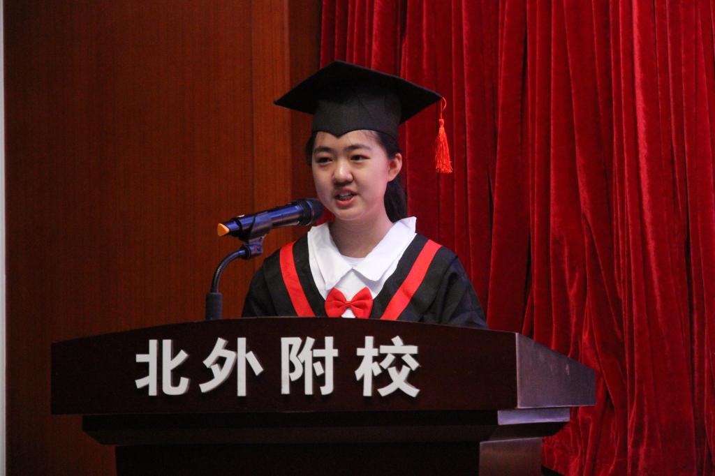毕业典礼在热情洋溢的校歌中拉开帷幕。刘校长向圆满完成学业的毕业生表示热烈的祝贺,并为全体毕业生送上了深情寄语:希望同学们在今后的人生之路上,秉承母校的优良传统,做一个胸怀天下,谦逊有礼,博学多才的附校人。母校也永远支持大家,做大家坚强的后盾。她殷切的话语让全体毕业生感受到了母校的关怀和温暖。随后,王海琳老师代表六年级全体教师回忆六年师生情缘中的点点滴滴,表达了对学生的依依不舍和美好祝福。毕业生家长代表金建、张晓欧发言,表达了对学校、对老师的感恩及对学生的殷殷的叮咛;毕业生代表崔若晰在发言中,深切的表达了对母校的留恋,对师恩的感谢,对未来的希冀!